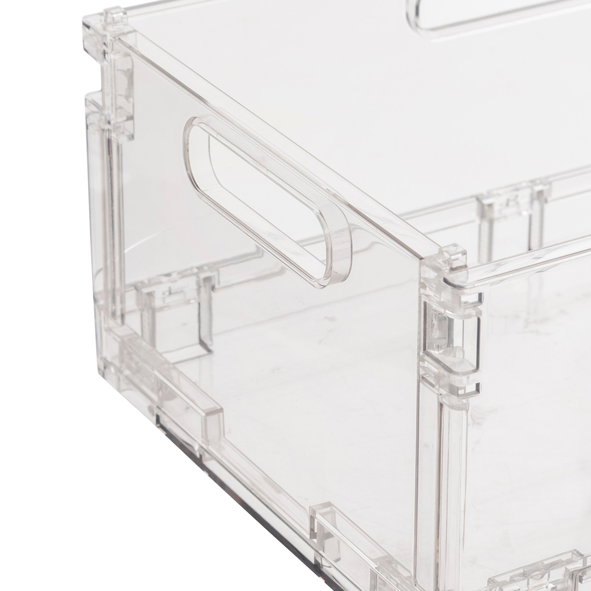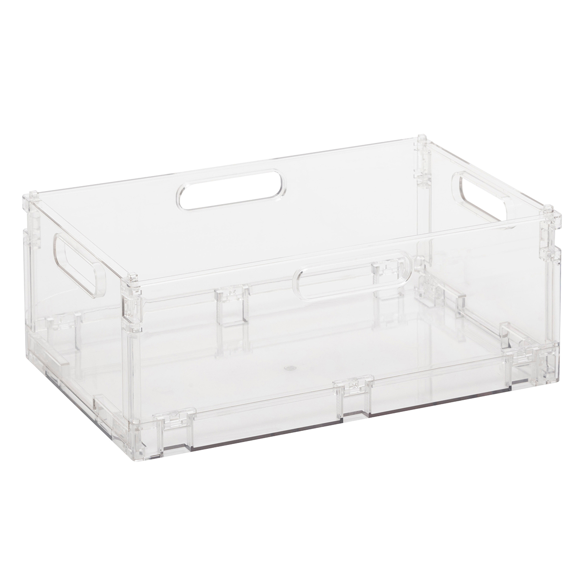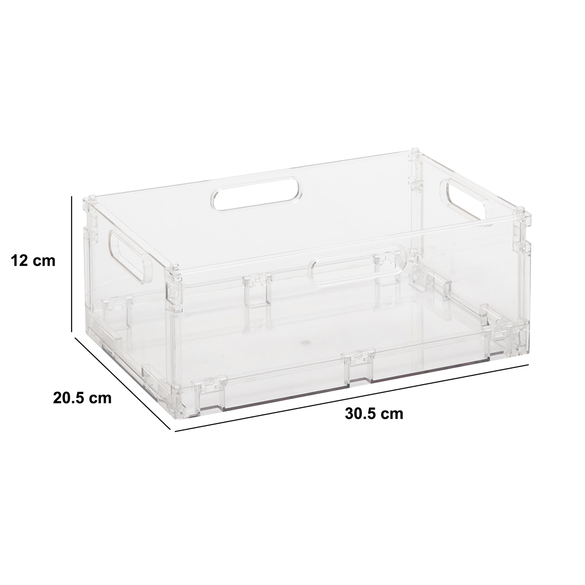 Διάφανο κουτί αποθήκευσης κατασκευασμένο από πλαστικό υλικό. Διαθέτει λαβές για εύκολη μεταφορά και είναι πτυσσόμενο για να αποθηκεύεται εύκολα όταν δεν χρησιμοποιείται. Χρησιμεύει σαν αποθηκευτικός χώρο σε ένα ράφι, στο μπάνιο, την ντουλάπα, το παιδικό δωμάτιο ή όπου αλλού χρειάζεται να οργανώσετε μικροπράγματα. Είναι στοιβαζόμενο με τα υπόλοιπα κουτιά του ίδιου σετ. Χωρητικότητα 7.5lt.