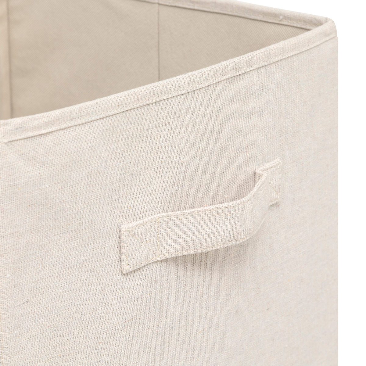 Κουτί αποθήκευσης σε εκρού χρώμα. Είναι κατασκευασμένο εξωτερικά από ύφασμα και εσωτερικά από χαρτόνι για να κρατάει το σχήμα του. Μπορείτε να το χρησιμοποιήσετε σαν αποθηκευτικό χώρο σε ένα ράφι. Ιδανικό για να κρατήσει οργανωμένα τα αντικείμενά σας, δίνοντας παράλληλα μια μοντέρνα πινελιά στην διακόσμηση σας.