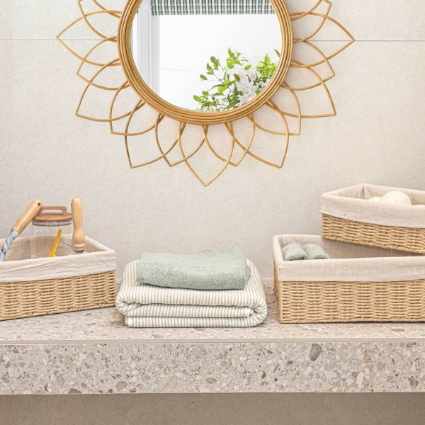 Καλάθι αποθήκευσης σε μπεζ χρώμα από την εταιρεία εstia. Είναι κατασκευασμένο από υλικό Paper Rope, που συνδυάζει την αντοχή με το φυσικό στυλ. Συνδυάστε το με τα υπόλοιπα είδη της ίδιας σειράς για ένα ολοκληρωμένο αποτέλεσμα στο μπάνιο σας.