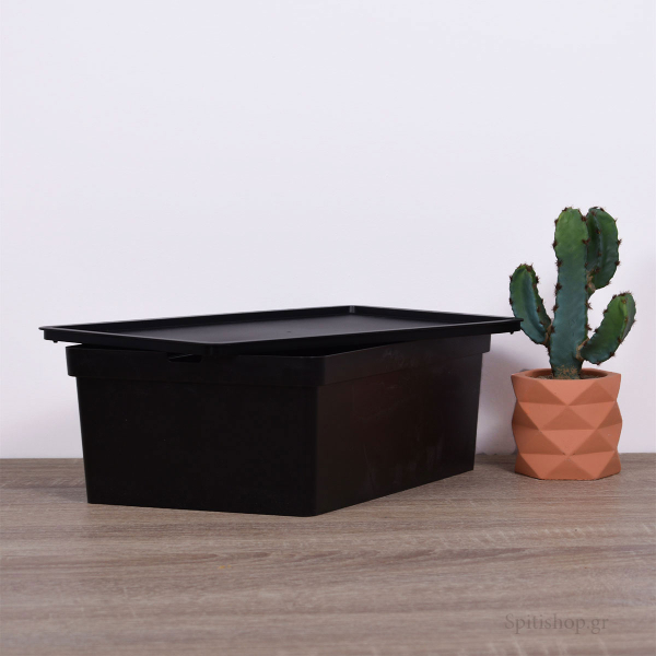 Κουτί αποθήκευσης μεγάλο 690-02 της εταιρείας Viomes, κατασκευασμένο από ανθεκτικό πλαστικό υλικό σε μαύρο χρώμα. Διαθέτει καπάκι ώστε να προστατεύεται το περιεχόμενο του και να μπορεί να στοιβαχτεί σταθερά το ένα κουτί πάνω στο άλλο. Είναι κατάλληλο για να αποθηκεύσετε ότι επιθυμείτε και να οργανώσετε διάφορα αντικείμενα καθημερινής και μη χρήσης. Ο διακριτικός και μίνιμαλ σχεδιασμός του το καθιστά ιδανικό για όλους τους χώρους σπιτιού όπως υπνοδωμάτια, μπάνιο, κουζίνα, σαλόνι και τραπεζαρία. Είναι ιδιαίτερα χρήσιμο και στα παιδικά δωμάτια, καθώς διαθέτει στρογγυλεμένες γωνίες. Συνδυάστε το με κουτιά Nova μεγαλύτερης διάστασης ή διαφορετικής απόχρωσης για ένα ολοκληρωμένο αποτέλεσμα. Τα προϊόντα Viomes είναι ελληνικής κατασκευής και εξαιρετικής ποιότητας.