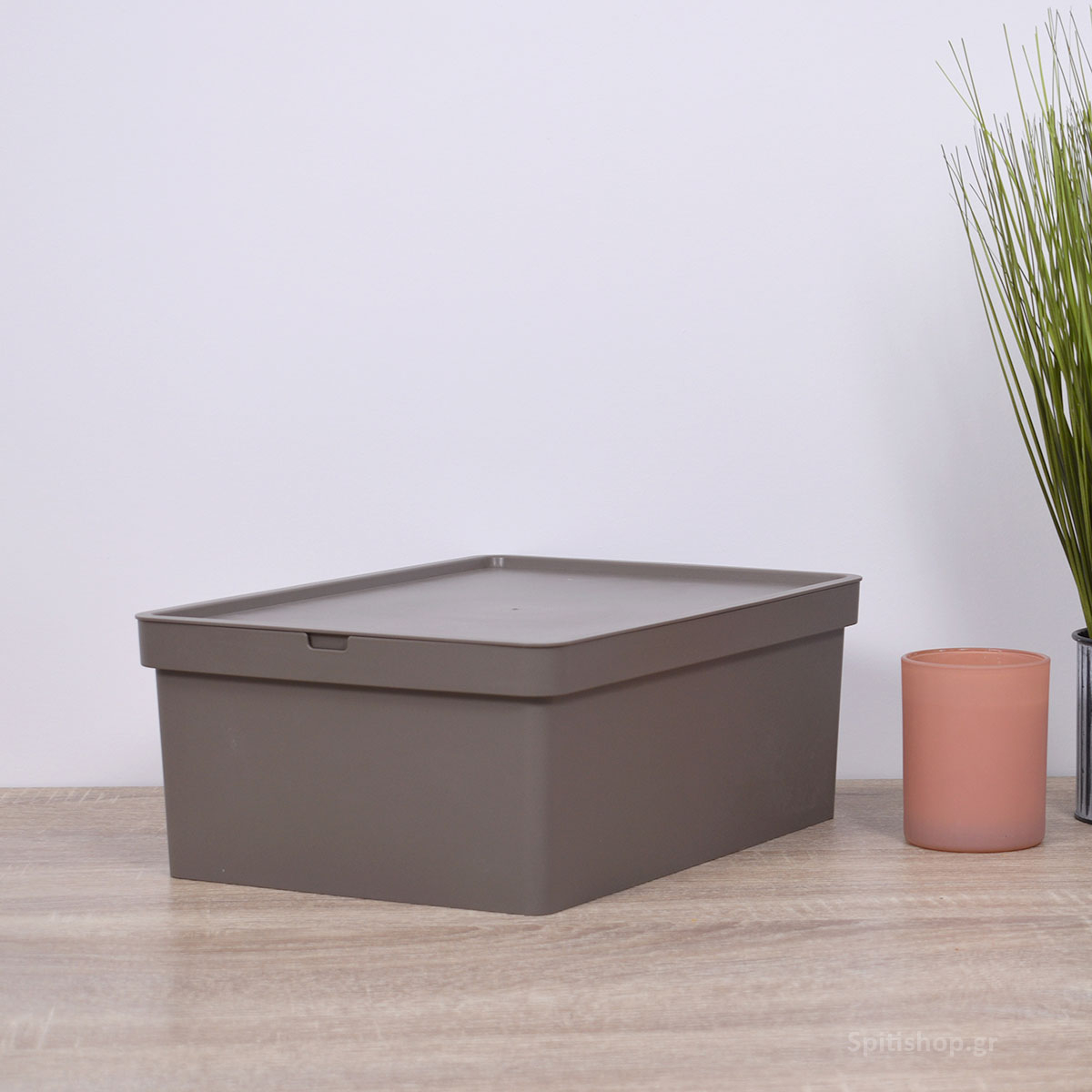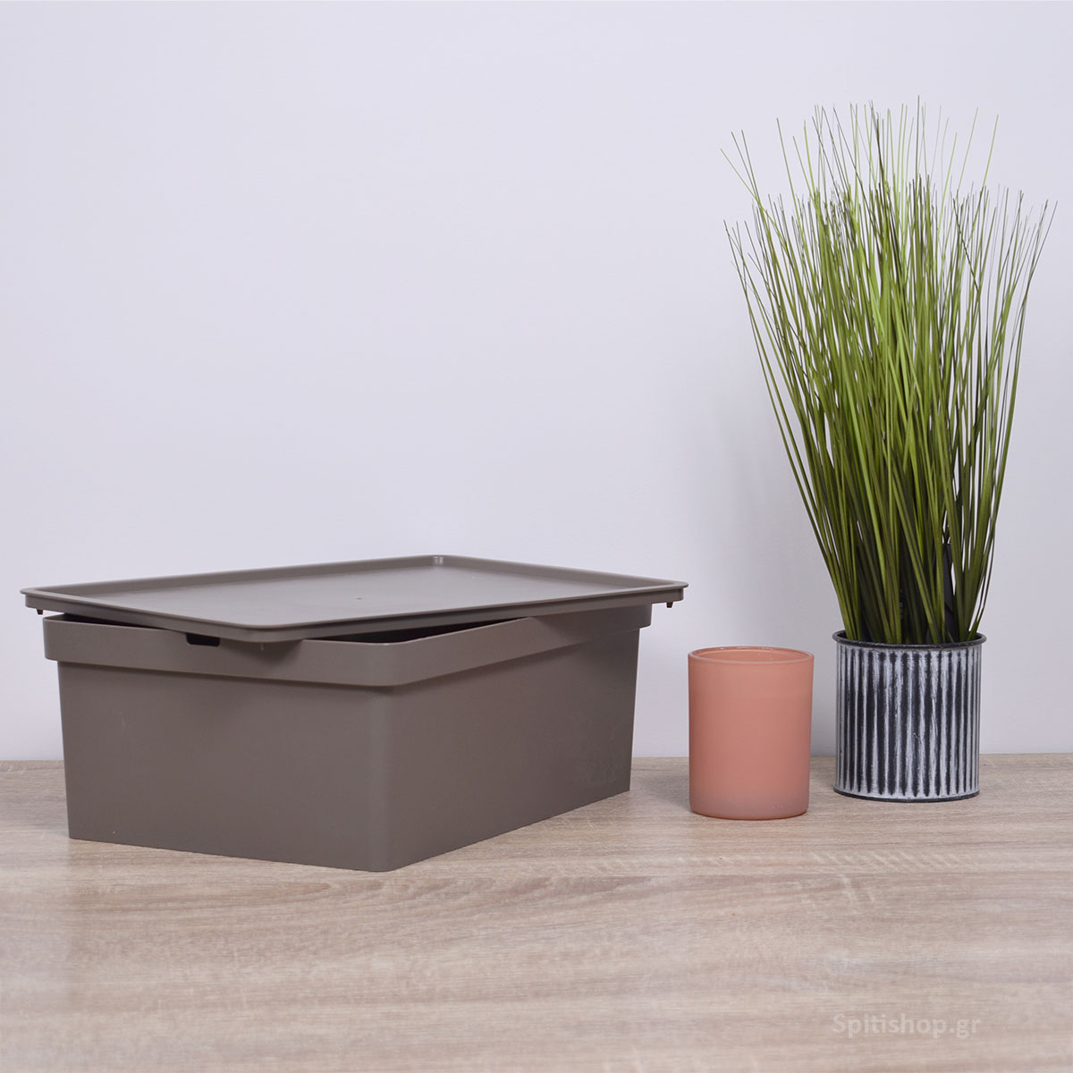 Κουτί αποθήκευσης μεγάλο 690-02 της εταιρείας Viomes, κατασκευασμένο από ανθεκτικό πλαστικό υλικό σε γκρι-καφέ (taupe) απόχρωση. Διαθέτει καπάκι ώστε να προστατεύεται το περιεχόμενο του και να μπορεί να στοιβαχτεί σταθερά το ένα κουτί πάνω στο άλλο. Είναι κατάλληλο για να αποθηκεύσετε ότι επιθυμείτε και να οργανώσετε διάφορα αντικείμενα καθημερινής και μη χρήσης. Ο διακριτικός και μίνιμαλ σχεδιασμός του το καθιστά ιδανικό για όλους τους χώρους σπιτιού όπως υπνοδωμάτια, μπάνιο, κουζίνα, σαλόνι και τραπεζαρία. Είναι ιδιαίτερα χρήσιμο και στα παιδικά δωμάτια, καθώς διαθέτει στρογγυλεμένες γωνίες. Συνδυάστε το με κουτιά Nova μεγαλύτερης διάστασης ή διαφορετικής απόχρωσης για ένα ολοκληρωμένο αποτέλεσμα. Τα προϊόντα Viomes είναι ελληνικής κατασκευής και εξαιρετικής ποιότητας.