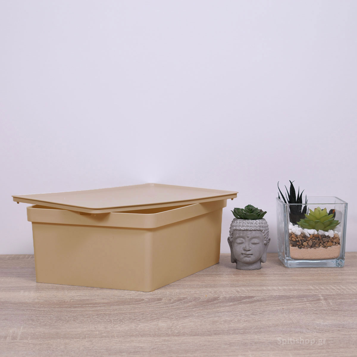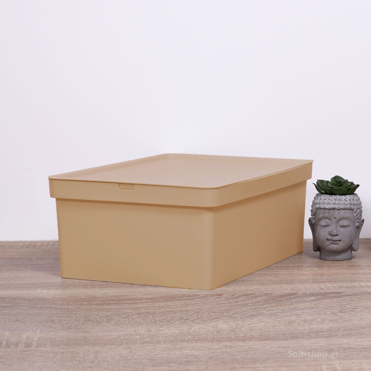 Κουτί αποθήκευσης μεγάλο 690-56 της εταιρείας Viomes, κατασκευασμένο από ανθεκτικό πλαστικό υλικό σε μπεζ απόχρωση. Διαθέτει καπάκι ώστε να προστατεύεται το περιεχόμενο του και να μπορεί να στοιβαχτεί σταθερά το ένα κουτί πάνω στο άλλο. Είναι κατάλληλο για να αποθηκεύσετε ότι επιθυμείτε και να οργανώσετε διάφορα αντικείμενα καθημερινής και μη χρήσης. Ο διακριτικός και μίνιμαλ σχεδιασμός του το καθιστά ιδανικό για όλους τους χώρους σπιτιού όπως υπνοδωμάτια, μπάνιο, κουζίνα, σαλόνι και τραπεζαρία. Είναι ιδιαίτερα χρήσιμο και στα παιδικά δωμάτια, καθώς διαθέτει στρογγυλεμένες γωνίες. Συνδυάστε το με κουτιά Nova μεγαλύτερης διάστασης ή διαφορετικής απόχρωσης για ένα ολοκληρωμένο αποτέλεσμα. Τα προϊόντα Viomes είναι ελληνικής κατασκευής και εξαιρετικής ποιότητας.