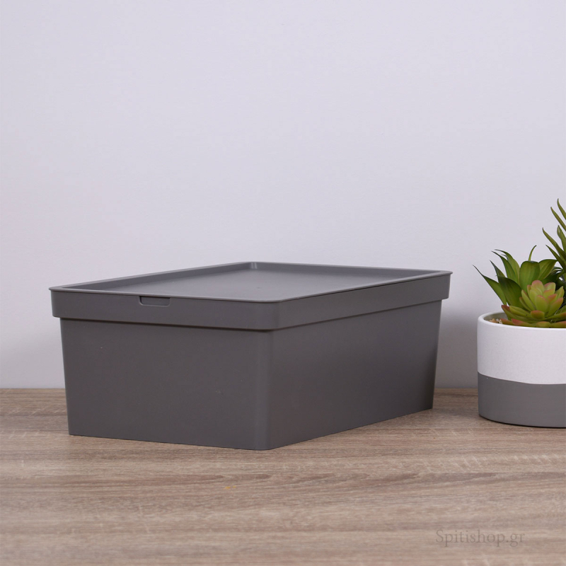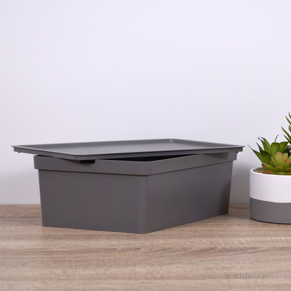 Κουτί αποθήκευσης μεγάλο 690-67 της εταιρείας Viomes, κατασκευασμένο από ανθεκτικό πλαστικό υλικό σε γκρι απόχρωση. Διαθέτει καπάκι ώστε να προστατεύεται το περιεχόμενο του και να μπορεί να στοιβαχτεί σταθερά το ένα κουτί πάνω στο άλλο. Είναι κατάλληλο για να αποθηκεύσετε ότι επιθυμείτε και να οργανώσετε διάφορα αντικείμενα καθημερινής και μη χρήσης. Ο διακριτικός και μίνιμαλ σχεδιασμός του το καθιστά ιδανικό για όλους τους χώρους σπιτιού όπως υπνοδωμάτια, μπάνιο, κουζίνα, σαλόνι και τραπεζαρία. Είναι ιδιαίτερα χρήσιμο και στα παιδικά δωμάτια, καθώς διαθέτει στρογγυλεμένες γωνίες. Συνδυάστε το με κουτιά Nova μεγαλύτερης διάστασης ή διαφορετικής απόχρωσης για ένα ολοκληρωμένο αποτέλεσμα. Τα προϊόντα Viomes είναι ελληνικής κατασκευής και εξαιρετικής ποιότητας.