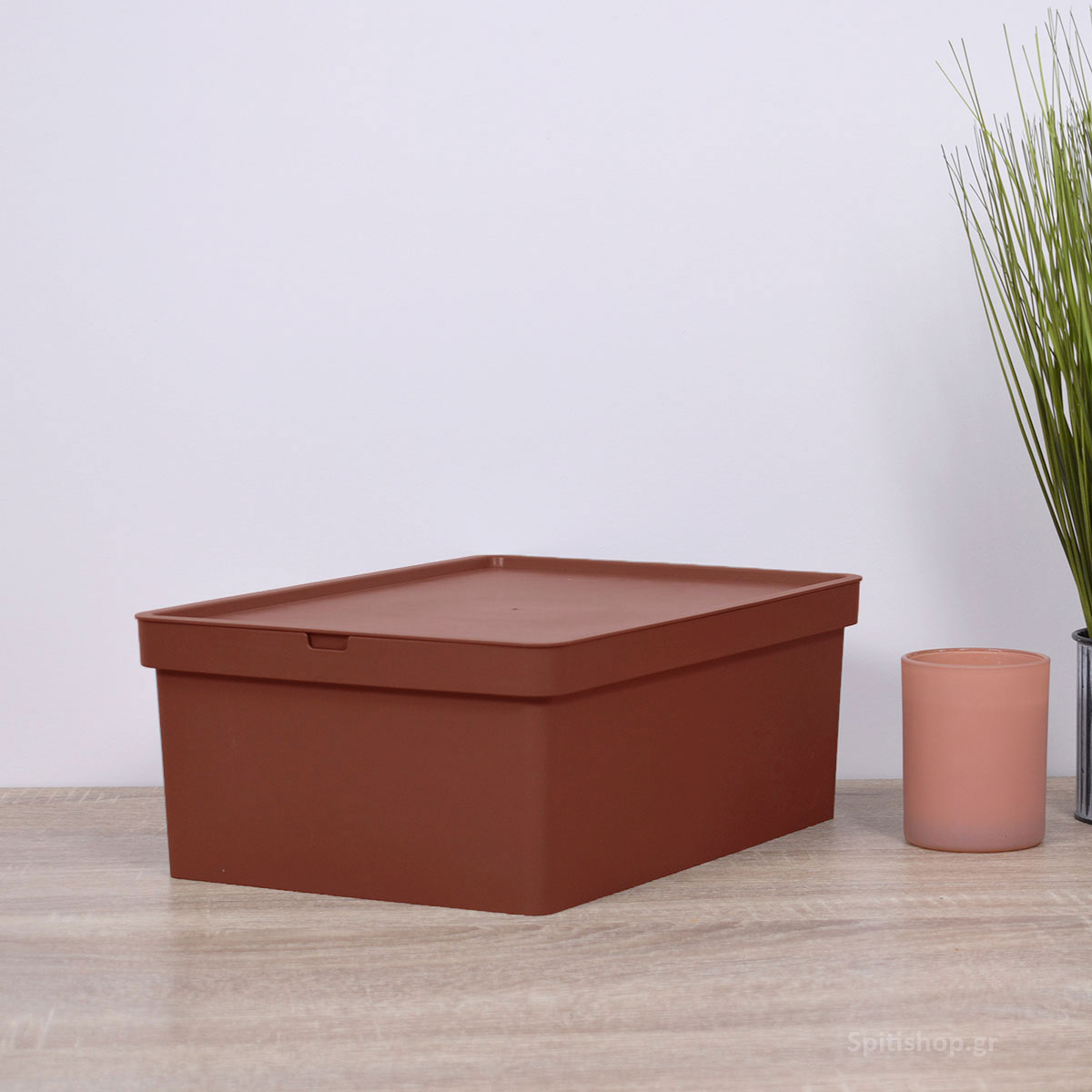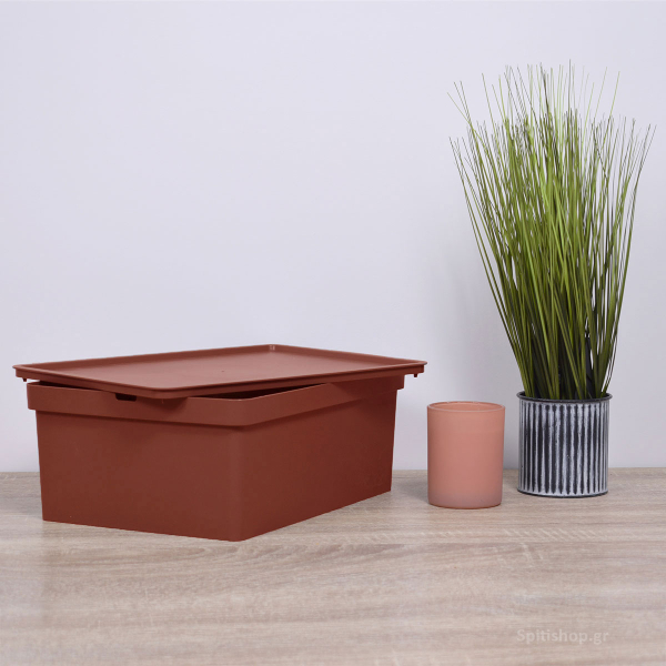 Κουτί αποθήκευσης μεγάλο 690-67 της εταιρείας Viomes, κατασκευασμένο από ανθεκτικό πλαστικό υλικό σε καφέ απόχρωση. Διαθέτει καπάκι ώστε να προστατεύεται το περιεχόμενο του και να μπορεί να στοιβαχτεί σταθερά το ένα κουτί πάνω στο άλλο. Είναι κατάλληλο για να αποθηκεύσετε ότι επιθυμείτε και να οργανώσετε διάφορα αντικείμενα καθημερινής και μη χρήσης. Ο διακριτικός και μίνιμαλ σχεδιασμός του το καθιστά ιδανικό για όλους τους χώρους σπιτιού όπως υπνοδωμάτια, μπάνιο, κουζίνα, σαλόνι και τραπεζαρία. Είναι ιδιαίτερα χρήσιμο και στα παιδικά δωμάτια, καθώς διαθέτει στρογγυλεμένες γωνίες. Συνδυάστε το με κουτιά Nova μεγαλύτερης διάστασης ή διαφορετικής απόχρωσης για ένα ολοκληρωμένο αποτέλεσμα. Τα προϊόντα Viomes είναι ελληνικής κατασκευής και εξαιρετικής ποιότητας.