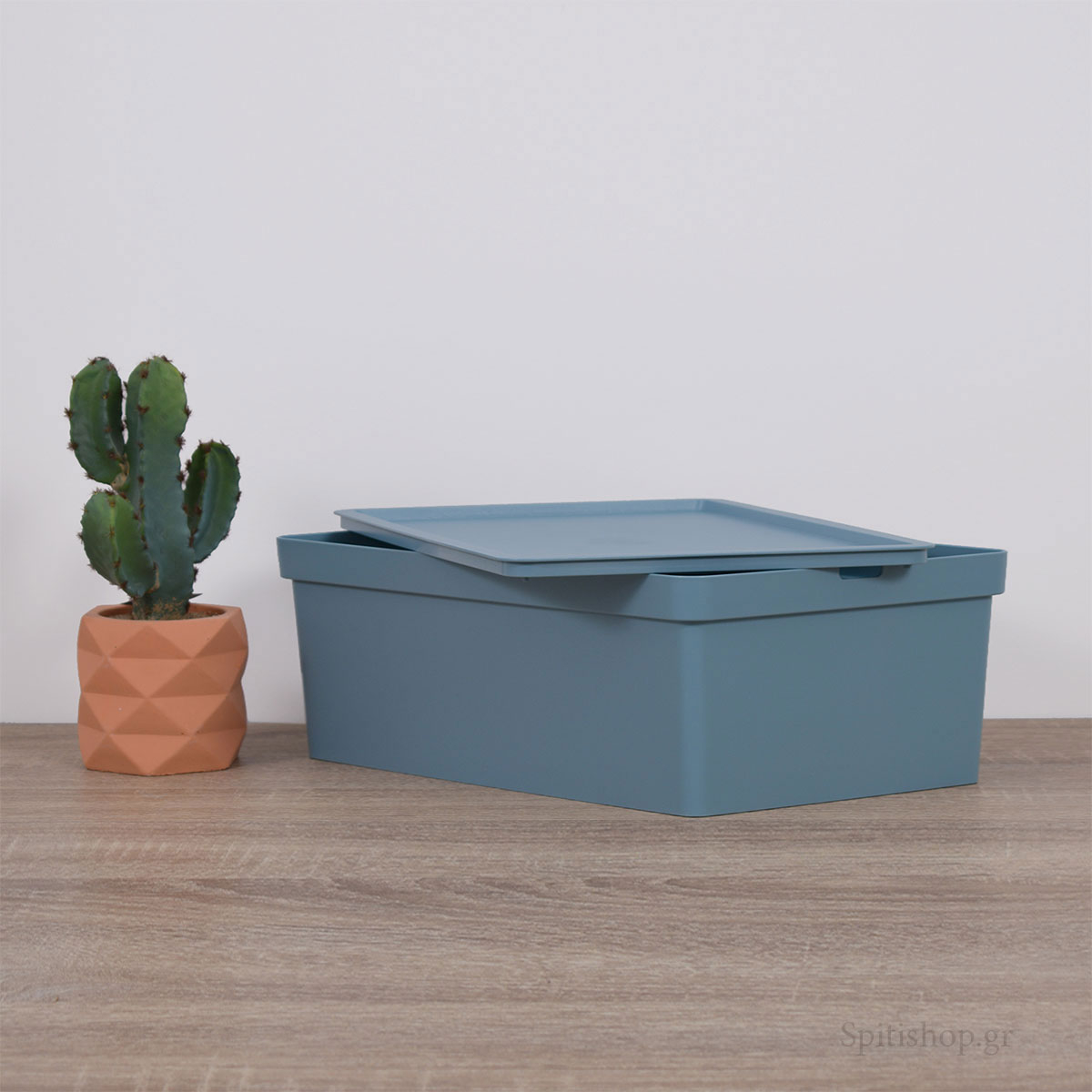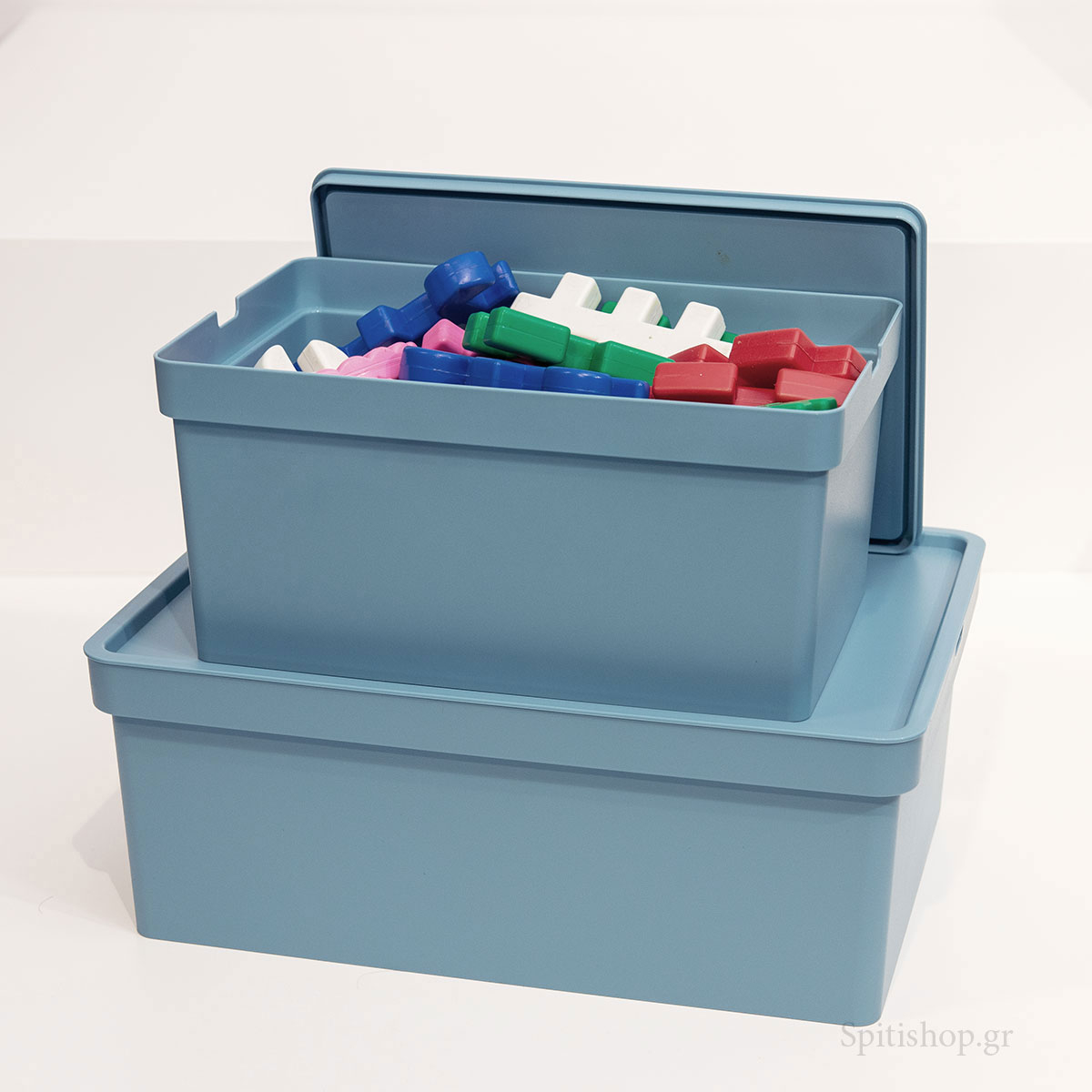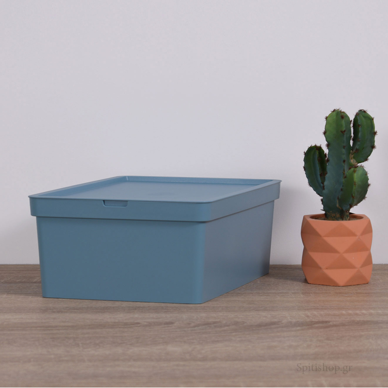 Κουτί αποθήκευσης μεγάλο 690-02 της εταιρείας Viomes, κατασκευασμένο από ανθεκτικό πλαστικό υλικό σε γαλάζια απόχρωση. Διαθέτει καπάκι ώστε να προστατεύεται το περιεχόμενο του και να μπορεί να στοιβαχτεί σταθερά το ένα κουτί πάνω στο άλλο. Είναι κατάλληλο για να αποθηκεύσετε ότι επιθυμείτε και να οργανώσετε διάφορα αντικείμενα καθημερινής και μη χρήσης. Ο διακριτικός και μίνιμαλ σχεδιασμός του το καθιστά ιδανικό για όλους τους χώρους σπιτιού όπως υπνοδωμάτια, μπάνιο, κουζίνα, σαλόνι και τραπεζαρία. Είναι ιδιαίτερα χρήσιμο και στα παιδικά δωμάτια, καθώς διαθέτει στρογγυλεμένες γωνίες. Συνδυάστε το με κουτιά Nova μεγαλύτερης διάστασης ή διαφορετικής απόχρωσης για ένα ολοκληρωμένο αποτέλεσμα. Τα προϊόντα Viomes είναι ελληνικής κατασκευής και εξαιρετικής ποιότητας.