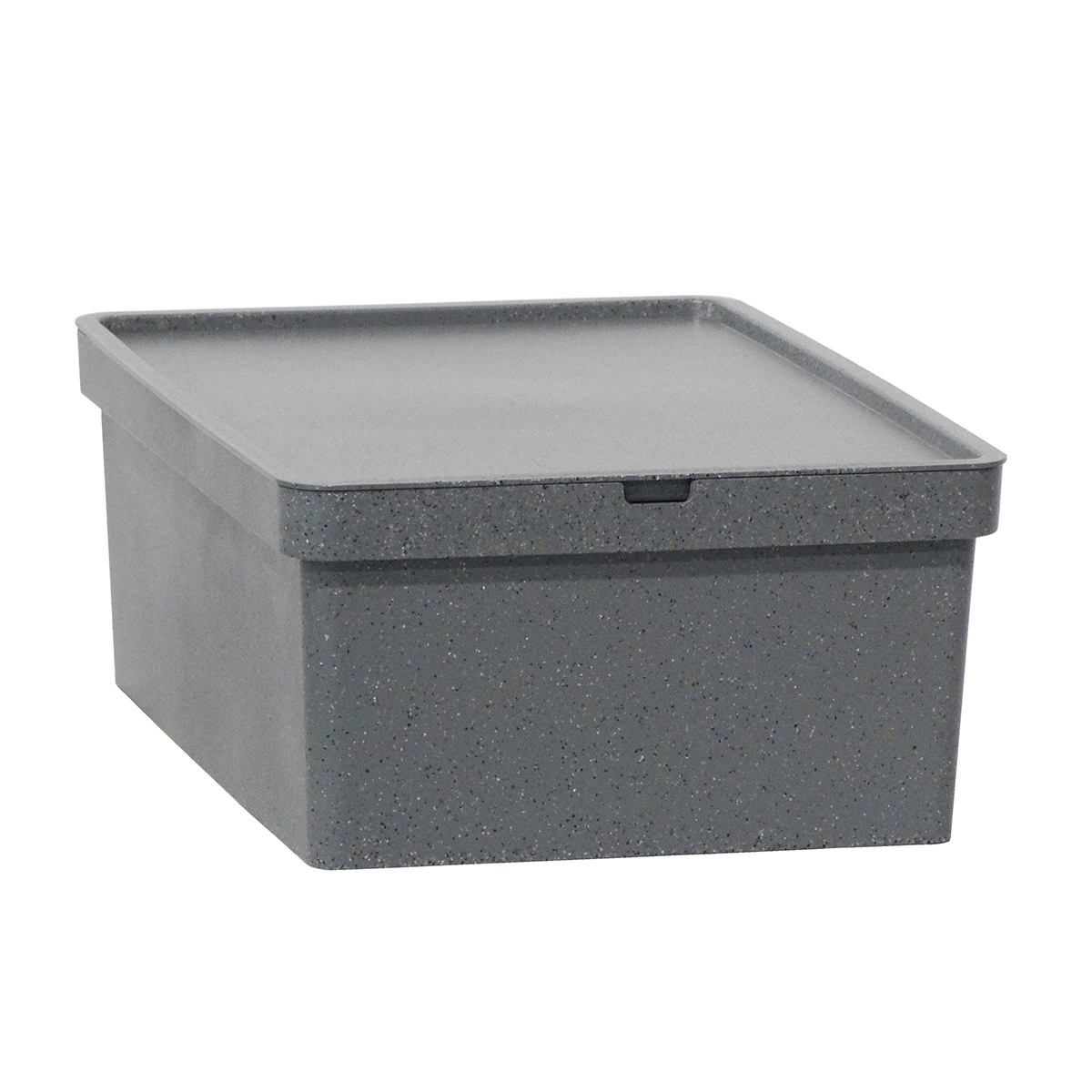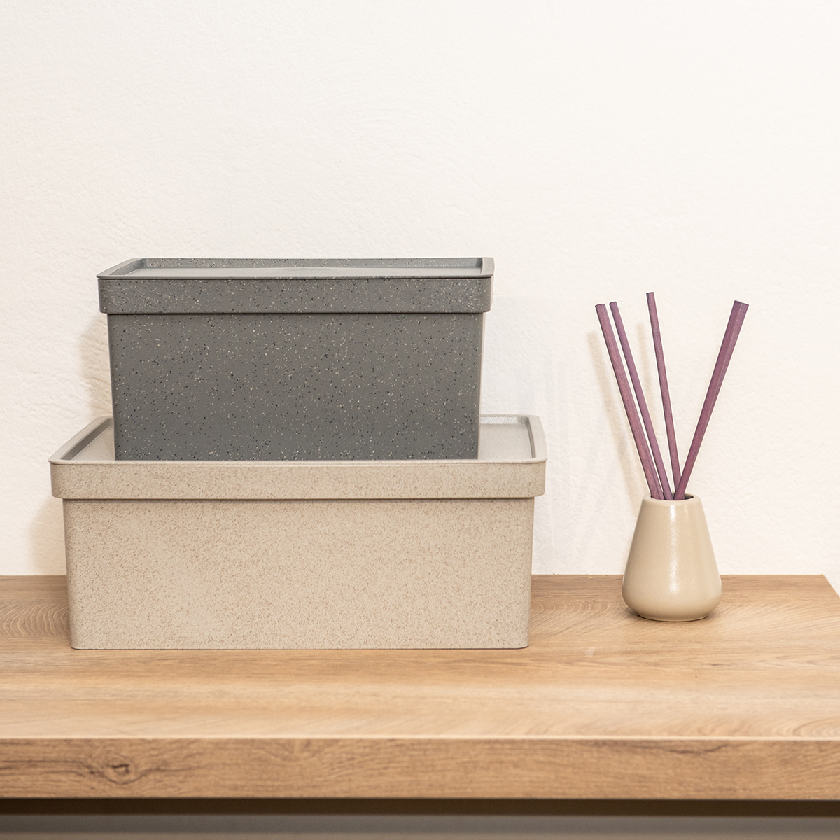 Κουτί αποθήκευσης μεγάλο 690-02 της εταιρείας Viomes, κατασκευασμένο από ανθεκτικό πλαστικό υλικό σε γκρι απόχρωση. Διαθέτει καπάκι ώστε να προστατεύεται το περιεχόμενο του και να μπορεί να στοιβαχτεί σταθερά το ένα κουτί πάνω στο άλλο. Είναι κατάλληλο για να αποθηκεύσετε ότι επιθυμείτε και να οργανώσετε διάφορα αντικείμενα καθημερινής και μη χρήσης. Ο διακριτικός και μίνιμαλ σχεδιασμός του το καθιστά ιδανικό για όλους τους χώρους σπιτιού όπως υπνοδωμάτια, μπάνιο, κουζίνα, σαλόνι και τραπεζαρία. Είναι ιδιαίτερα χρήσιμο και στα παιδικά δωμάτια, καθώς διαθέτει στρογγυλεμένες γωνίες. Συνδυάστε το με κουτιά Nova μεγαλύτερης διάστασης ή διαφορετικής απόχρωσης για ένα ολοκληρωμένο αποτέλεσμα. Τα προϊόντα Viomes είναι ελληνικής κατασκευής και εξαιρετικής ποιότητας.