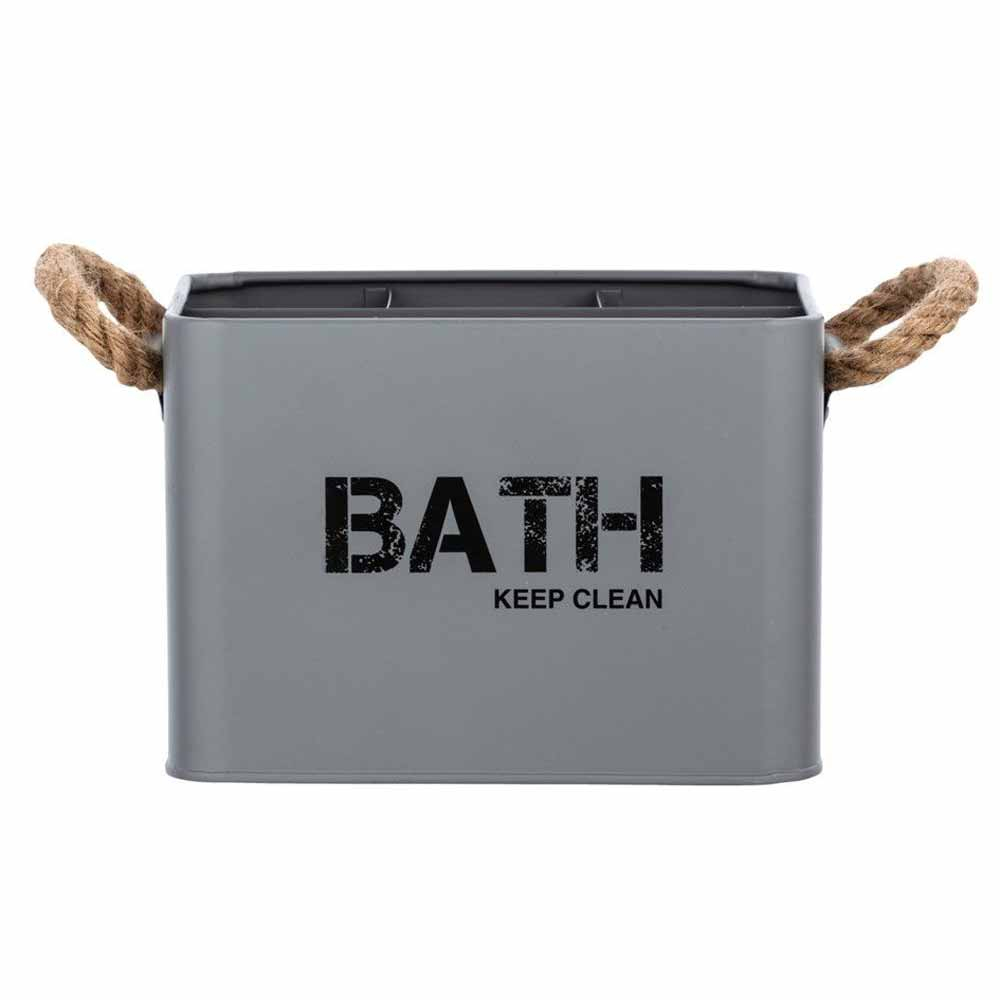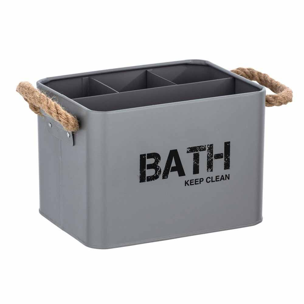 Κουτί αποθήκευσης από τη συλλογή Gara της γερμανικής εταιρείας Wenko. Είναι μεταλλικό με μοντέρνο σχέδιο και γκρι χρώμα. Έχει διαχωριστικά που δημιουργούν 4 θέσεις τοποθέτησης. Είναι ιδανικό για να οργανώσετε τις βούρτσες, τις χτένες, τις κρέμες, μέχρι και τα φάρμακά σας. Διαθέτει πλεκτές λαβές από σκοινί για πρκατικότητα και εύκολη μεταφορά.