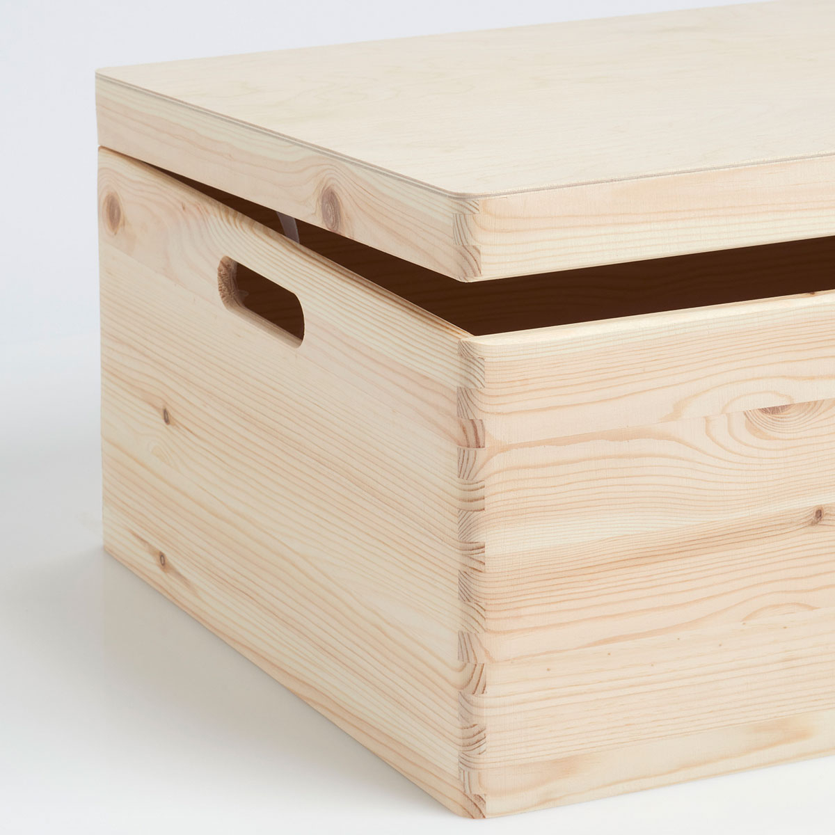 Κουτί αποθήκευσης σε μπεζ χρώμα κατασκευασμένο από ξύλο πεύκου. Διαθέτει λαβές για εύκολη μεταφορά και καπάκι. Μπορείτε να το χρησιμοποιήσετε σε ένα ράφι για να αποθηκεύετε μικροπράγματα ή ακόμα και στην κουζίνα. Ιδανικό για να κρατήσει οργανωμένα τα αντικείμενά σας, δίνοντας παράλληλα μια μοντέρνα πινελιά στην διακόσμηση σας. Ξύλο με πιστοποίηση FSC. Συνδυάστε το με τα υπόλοιπα προϊόντα της σειράς για ολοκληρωμένο αποτέλεσμα.