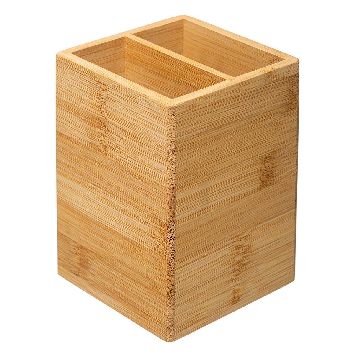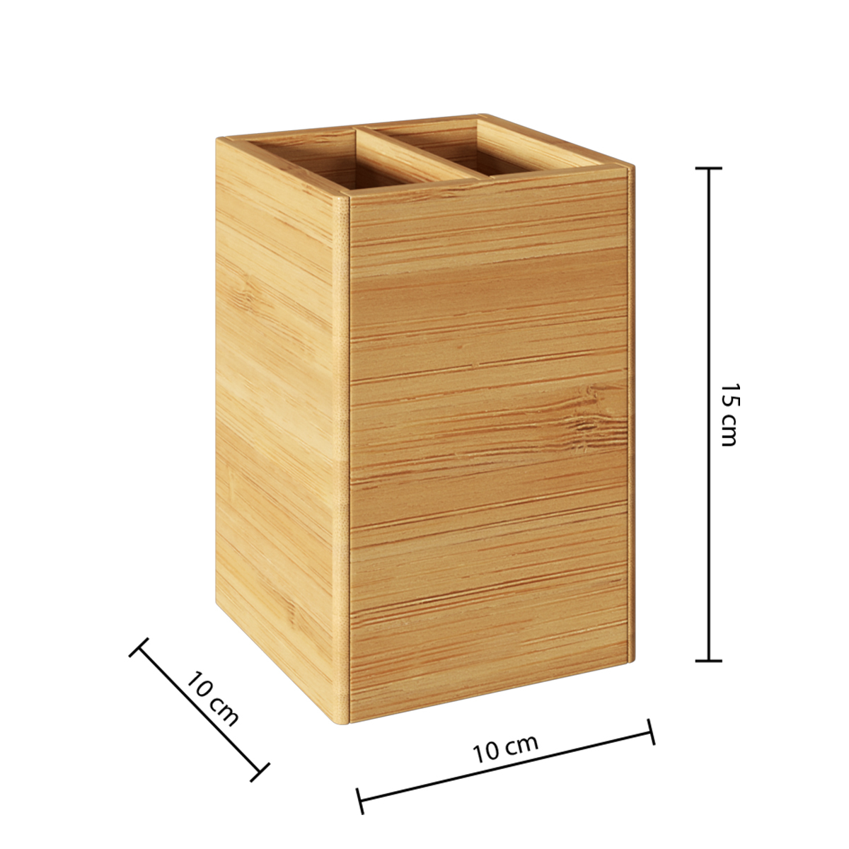 Κουταλοθήκη - στραγγιστήρι σε μπεζ χρώμα. Είναι κατασκευασμένη από ξύλο bamboo και έχει τρυπούλες στο κάτω μέρος για να μπορούν να στραγγίξουν τα μαχαιροπίρουνα. Χάρη στο σχεδιασμό του το νερό της αποστράγγισης διατρέχει εύκολα και έτσι τα αντικείμενα στεγνώνουν πιο γρήγορα. Διαθέτει 2 θήκες και μπορεί να φιλοξενήσει κουτάλες, μαχαίρια και μαχαιροπίρουνα. Συνδυάστε τη με τα υπόλοιπα είδη της ίδιας σειράς για ένα ολοκληρωμένο αποτέλεσμα.