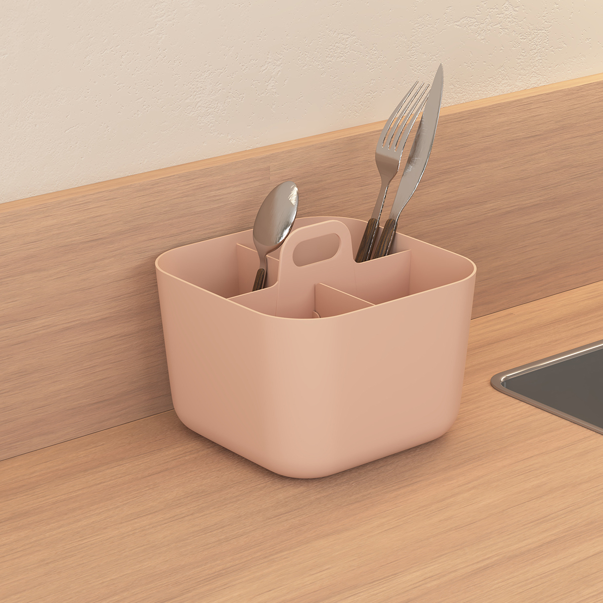 Κουταλοθήκη κατασκευασμένη από πλαστικό υλικό σε ροζ χρώμα. Διαθέτει 4 θήκες και 1 αποσπώμενο διαχωριστικό. Είναι ιδανική για να έχετε οργανωμένες τις κουτάλες πάνω στο πάγκο της κουζίνας σας. Διαθέτει λαβή για εύκολη μεταφορά. Μπορείτε να την χρησιμοποιήσετε και για να τοποθετήσετε τις κουτάλες σας ή τα μαχαιροπίρουνα την ώρα του φαγητού.
