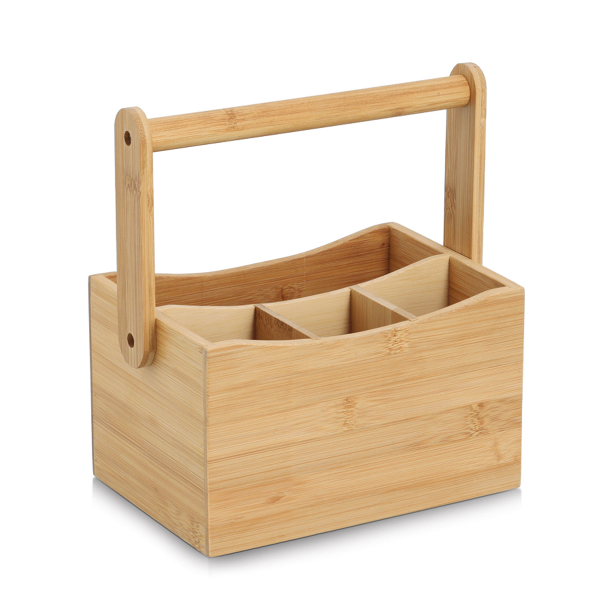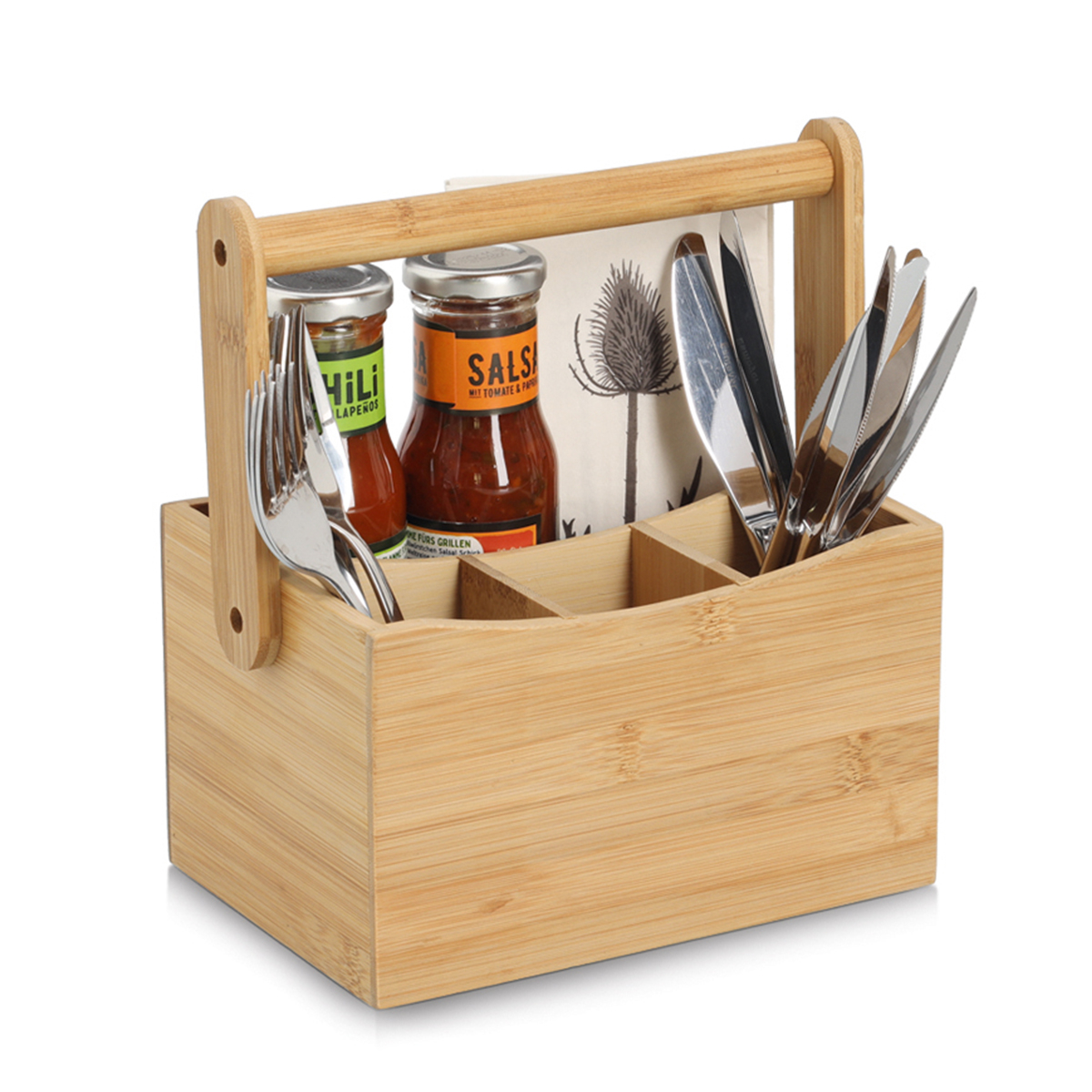 Κουταλοθήκη κατασκευασμένη από ξύλο bamboo σε μπεζ χρώμα. Διαθέτει 3 μικρές θήκες και 1 μεγαλύτερη. Έχει λαβή για εύκολη μεταφορά. Είναι ιδανική για να έχετε οργανωμένες τις κουτάλες πάνω στο πάγκο της κουζίνας σας. Μπορείτε να την χρησιμοποιήσετε και για να τοποθετήσετε τις κουτάλες σας ή τα μαχαιροπήρουνα την ώρα του φαγητού.