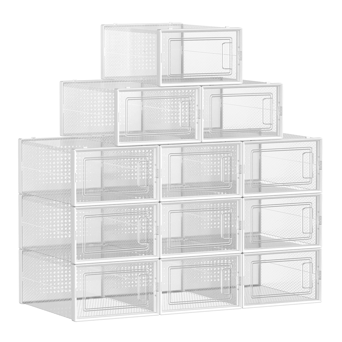 Παπουτσοθήκη 12 θέσεων από την εταιρεία Songmics. Αποτελείτε από 12 κουτιά κατασκευασμένα από διάφανο πλαστικό υλικό. Μπορεί να χωρέσει 12 ζευγάρια ογκώδη παπούτσια ή παραπάνω αν είναι πιο λεπτά. Η κάθε θέση είναι 33.5εκ.Μx23.2εκ.Πx14.3εκ.Υ. Η παπουτσοθήκη είναι αδιάβροχη και καθαρίζεται εύκολα με ένα πανάκι. Μπορείτε να τοποθετήσετε τα κουτιά όλα μαζί διαδοχικά ή ξεχωριστά. *Το προϊόν έρχεται αμοντάριστο.*