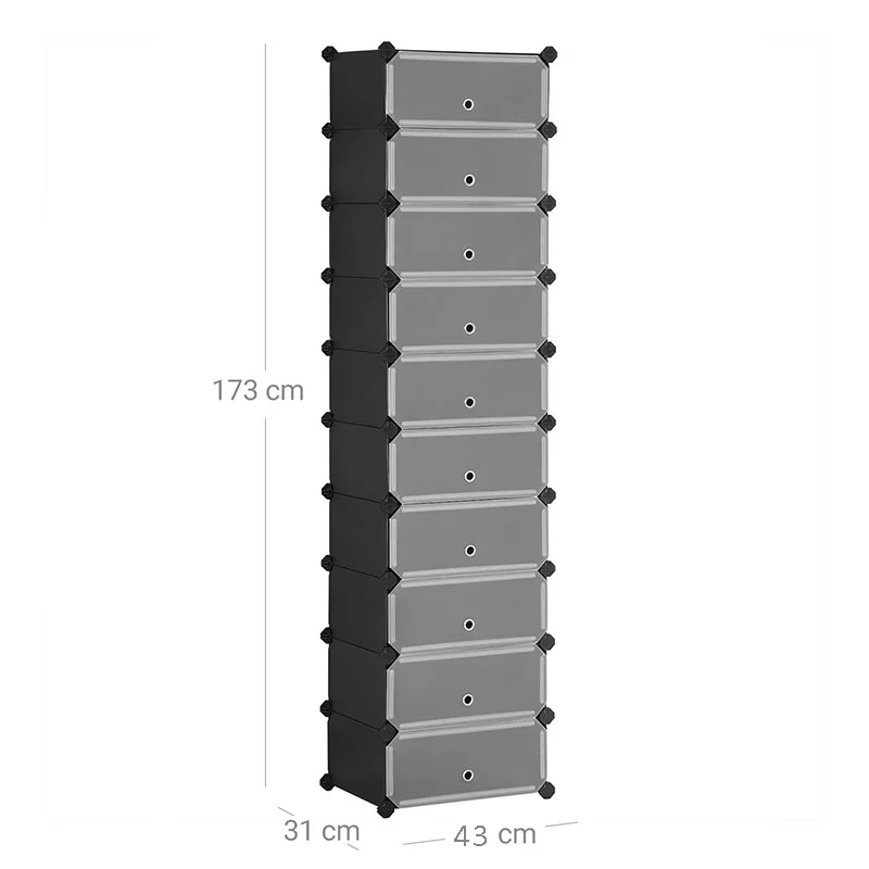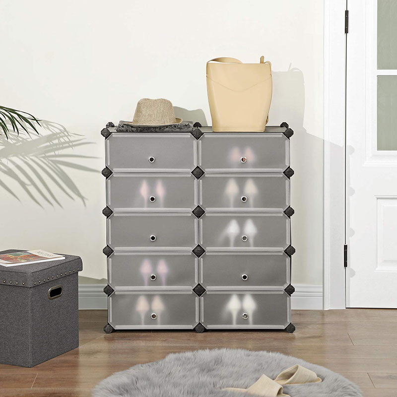 Παπουτσοθήκη-κουτιά αποθήκευσης από την εταιρεία Songmics. Αποτελείται από 10 κουτιά ιδανικά για να αποθηκεύεσετε παπούτσια ή ότι άλλο επιθυμείτε. Μπορείτε να στοιβάξετε το ένα κουτί πάνω στο άλλο ή να τα τοποθετήσετε όπως εσείς επιθυμείτε. Το προϊόν έρχεται αμοντάριστο.
