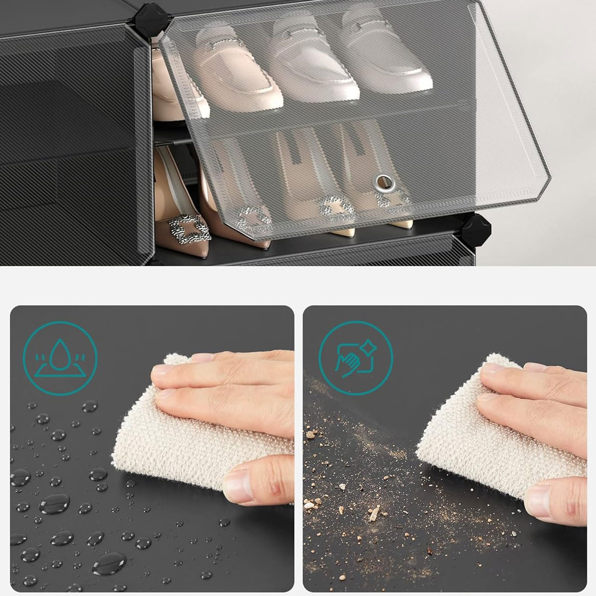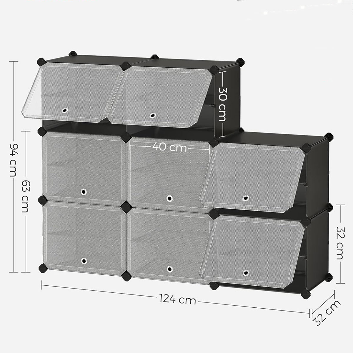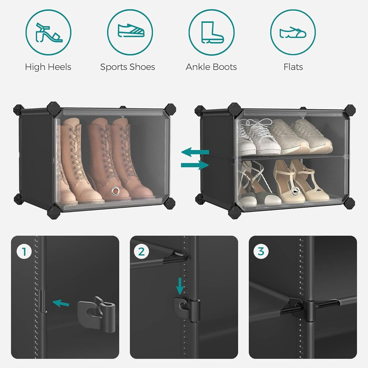 Στοιβαζόμενα κουτιά αποθήκευσης - παπουτσοθήκη από την εταιρεία Songmics. Αποτελείται από 8 κουτιά ιδανικά για να αποθηκεύεσετε παπούτσια ή ότι άλλο επιθυμείτε. Μπορείτε να στοιβάξετε το ένα κουτί πάνω στο άλλο ή το καθένα μεμονωμένα. Το προϊόν έρχεται αμοντάριστο.