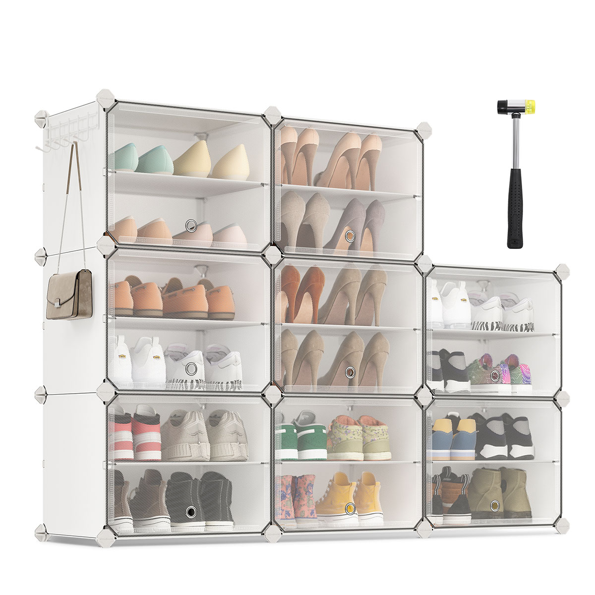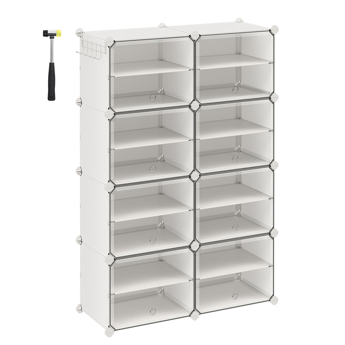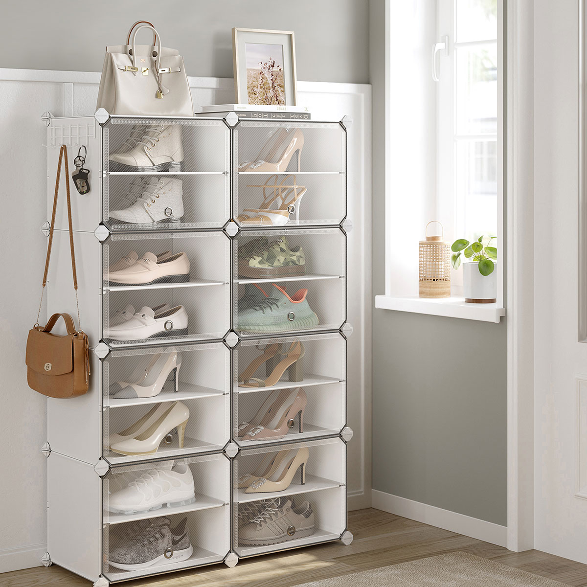 Στοιβαζόμενα κουτιά αποθήκευσης - παπουτσοθήκη από την εταιρεία Songmics. Αποτελείται από 8 κουτιά ιδανικά για να αποθηκεύεσετε παπούτσια ή ότι άλλο επιθυμείτε. Μπορείτε να στοιβάξετε το ένα κουτί πάνω στο άλλο ή το καθένα μεμονωμένα. Το προϊόν έρχεται αμοντάριστο.