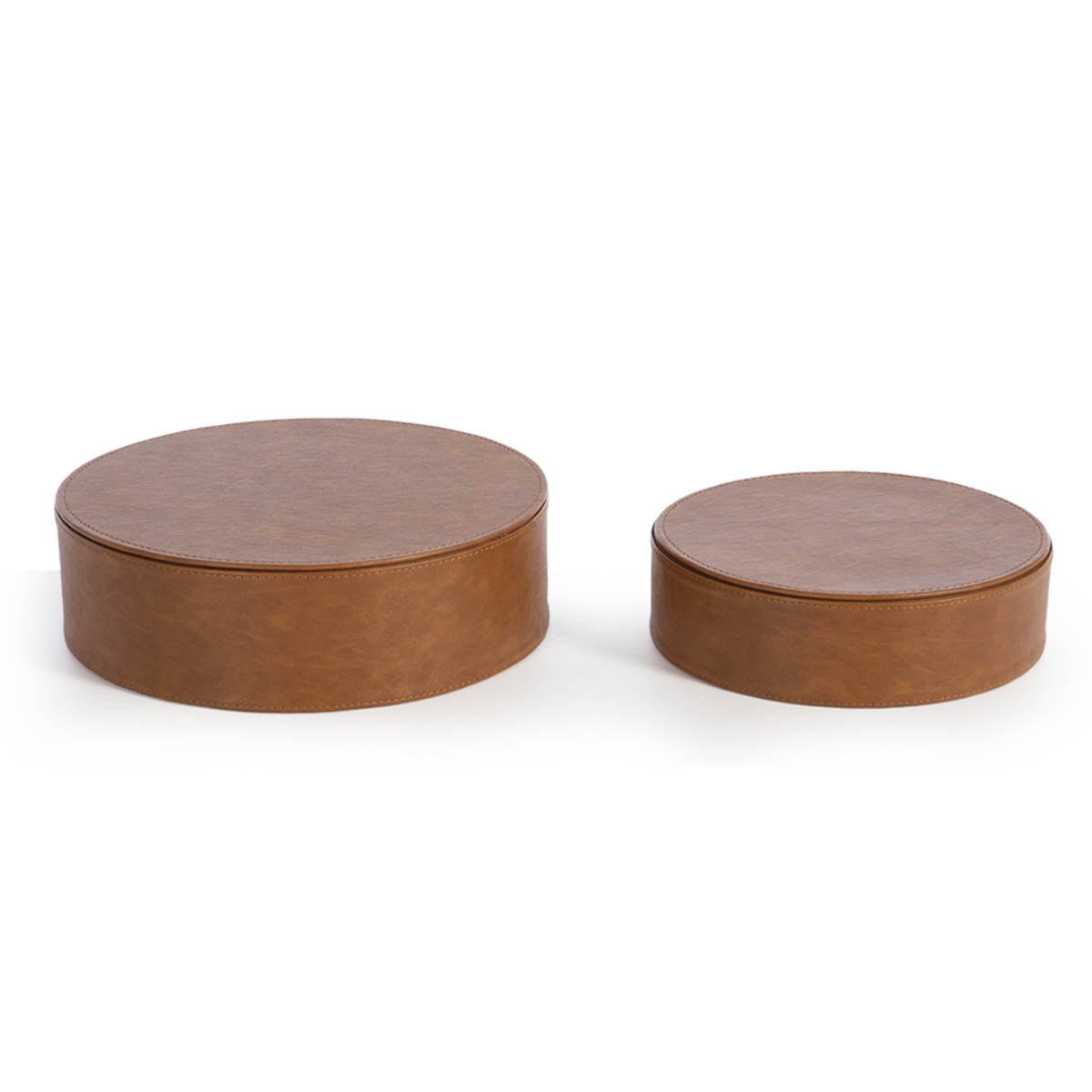 Κουτιά αποθήκευσης σε καφέ χρώμα από την εταιρεία Nef-Nef. Είναι κατασκευασμένα από δερματίνη υψηλής ποιότητας που προσφέρει πολυτέλεια στον χώρο σας και ανθεκτικότητα στην χρήση. Διαθέτουν καπάκι και είναι ιδανικά για να αποθηκεύσετε διάφορα μικροαντικείμενα. Συνδυάστε τα με τα υπόλοιπα προϊόντα της ίδιας σειράς για ένα ολοκληρωμένο αποτέλεσμα.