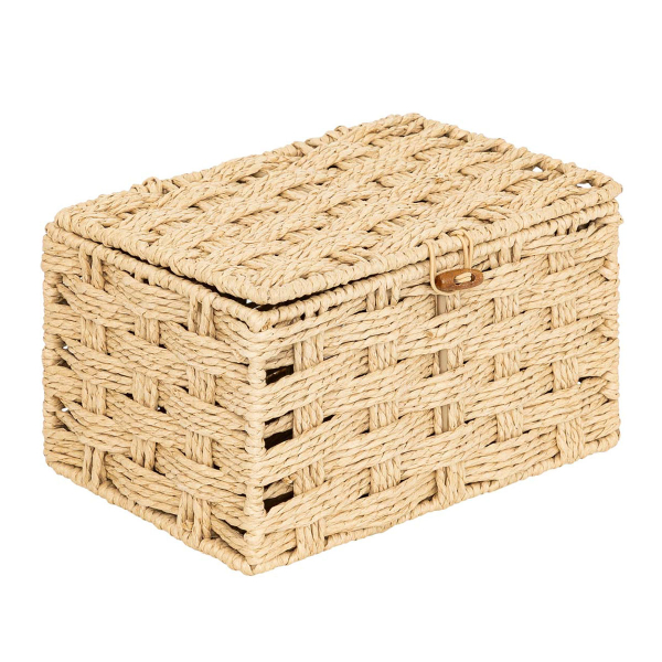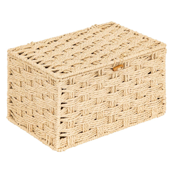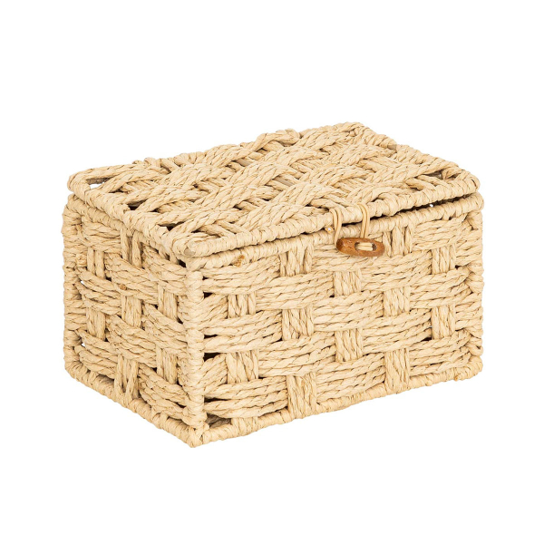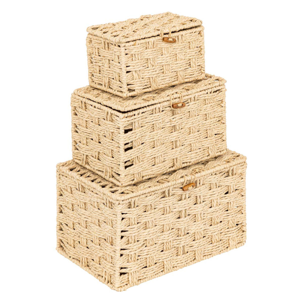 Σετ κουτιά αποθήκευσης με μίνιμαλ ύφος. Το σετ περιλαμβάνει 3 κουτιά με καπάκι διαφορετικών μεγεθών. Είναι κατασκευασμένα από χάρτινο σχοινί σε μπεζ χρώμα και διαθέτουν κούμπωμα για να παραμένουν κλειστά. Ιδανικά για να κρατήσουν οργανωμένα τα μικροαντικείμενα, τα περιοδικά και ότι άλλο φανταστείτε, δίνοντας παράλληλα μια φρέσκια ανάσα στο χώρο σας.