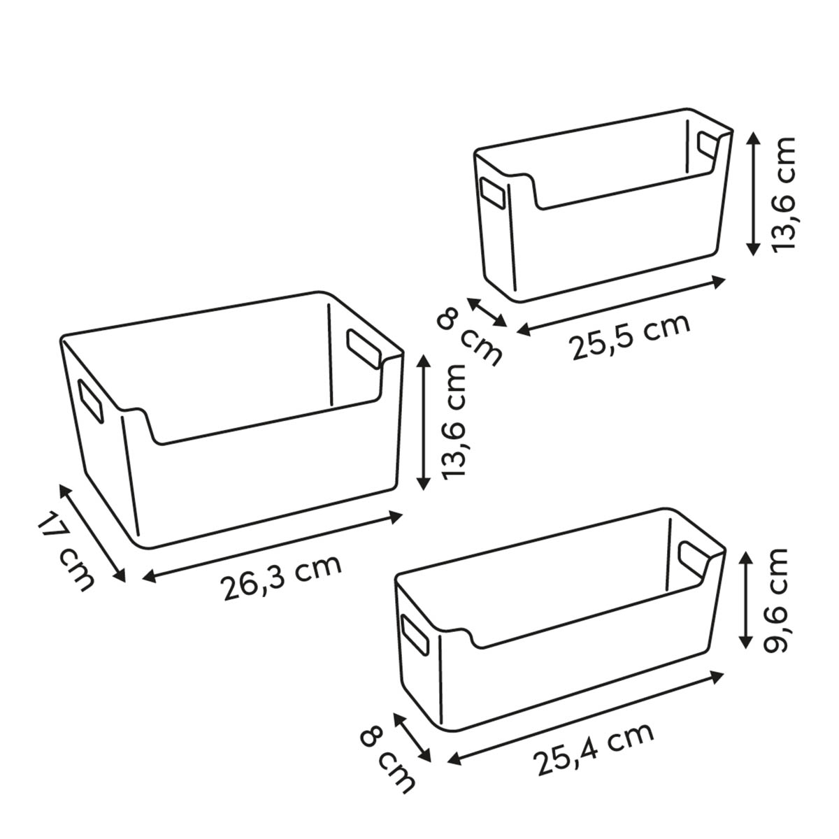 • Τεμάχια: 1 Κουτί Αποθήκευσης 25.4εκ.Μx8εκ.Πx9.6εκ.Υ, 1 Κουτί Αποθήκευσης 25.5εκ.Μx8εκ.Πx13.7εκ.Υ, 1 Κουτί Αποθήκευσης 26.3εκ.Μx17εκ.Πx13.6εκ.