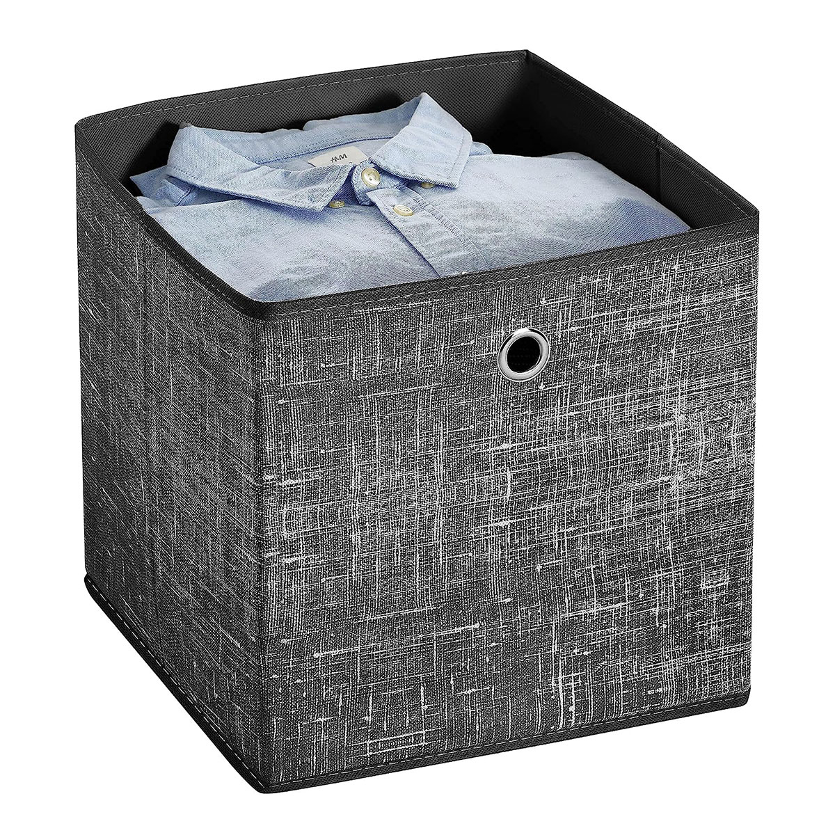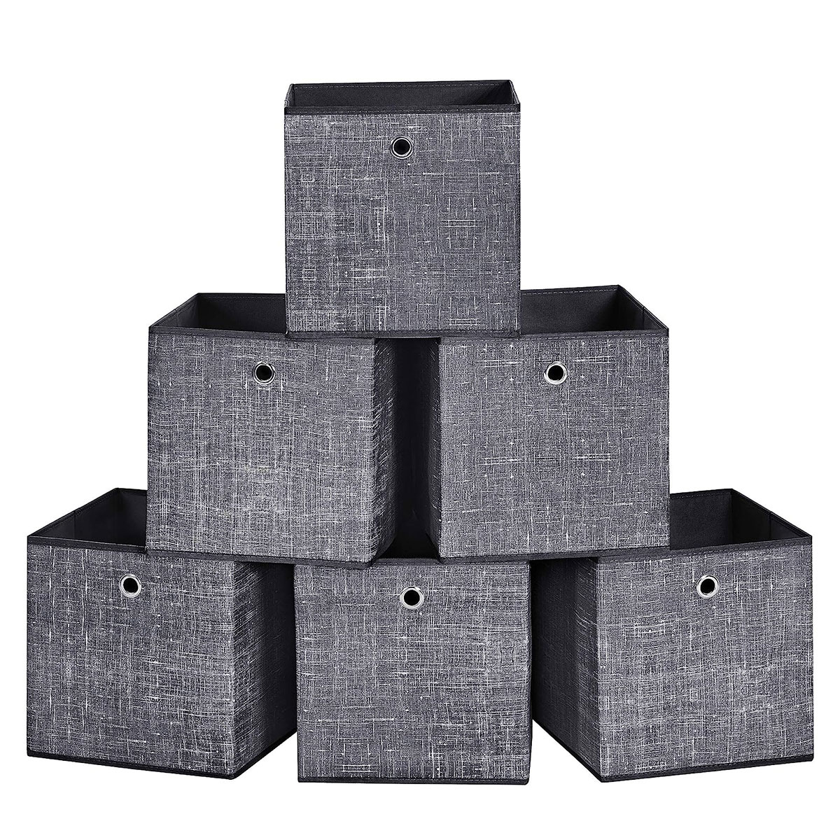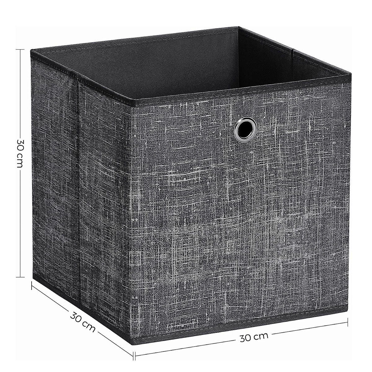 Κουτιά αποθήκευσης σε σετ 6 τεμαχίων με μίνιμαλ σχεδιασμό από την εταιρεία Songmics. Είναι κατασκευασμένα εξωτερικά από μαύρο συνθετικό ύφασμα non woven που αναπνέει και εσωτερικά από χαρτόνι για να κρατάνε το σχήμα τους. Μπορείτε να τα χρησιμοποιήσετε σαν αποθηκευτικό χώρο σε ράφια. Ιδανικά για να κρατήσουν οργανωμένα τα αντικείμενά σας, δίνοντας παράλληλα μια μοντέρνα πινελιά στην διακόσμηση σας. Όταν δεν χρησιμοποιούνται, μπορούν να διπλωθούν και να αποθηκευτούν για εξοικονόμηση χώρου. Μέγιστο βάρος αντοχής ανά κουτί: 5kg.