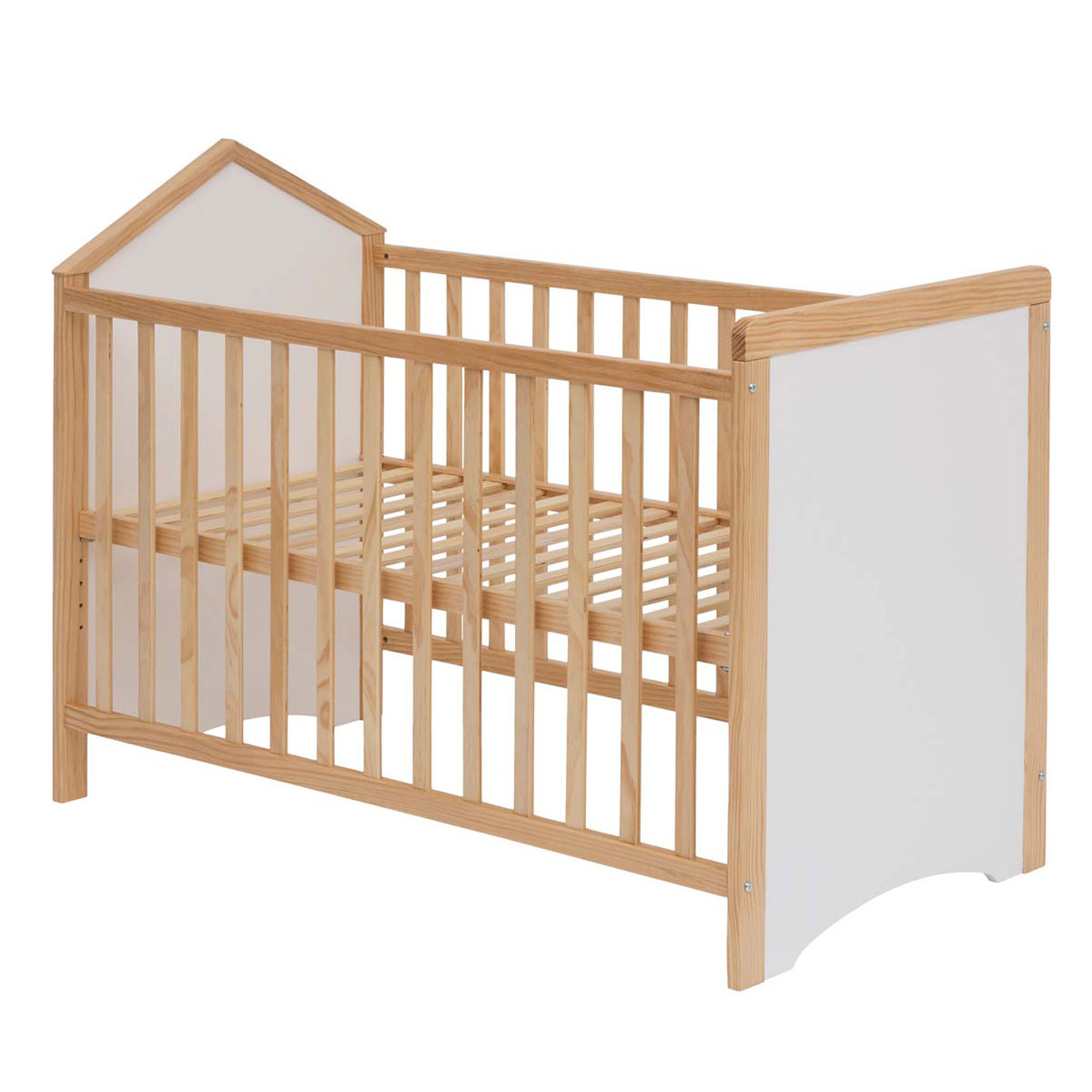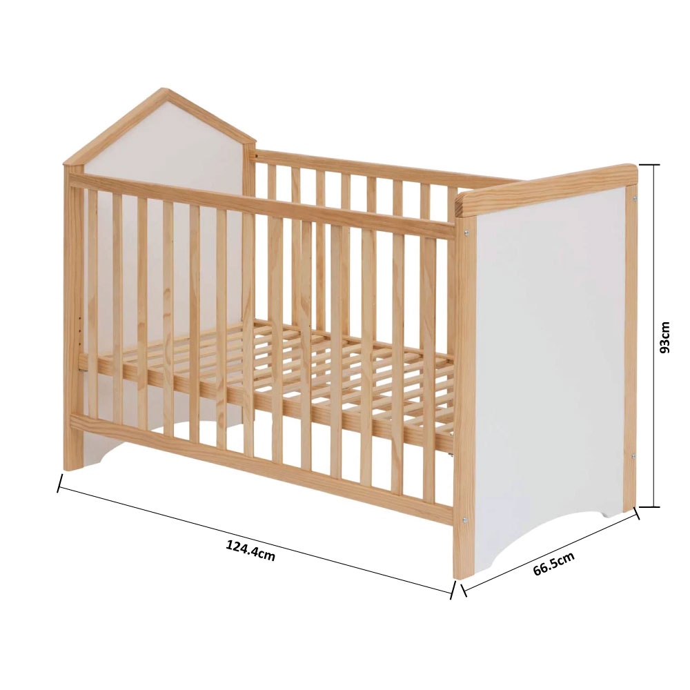 Κούνια σε λευκό χρώμα με λεπτομέρειες σε φυσική απόχρωση ξύλου. Σχεδιασμένο σε μοντέρνες γραμμές που συμπληρώνουν κάθε στυλ δωματίου. Με ανθεκτικά πόδια, τοποθετημένα κάτω από ένα ισχυρό πλαίσιο και οι δύο μεγάλες πλευρές επιτρέπουν την κυκλοφορία του αέρα. Η βάση του στρώματος έχει 5 επίπεδα για να μπορείτε εύκολα να προσαρμόσετε το ύψος του κρεβατιού, για την καλύτερη ασφάλεια του μωρού και μεγαλύτερη άνεση της μητέρας. Δέχεται στρώμα 120x60 (Δεν περιλαμβάνεται). Κατασκευασμένο από μασίφ ξύλο πεύκου και MDF_E1. Μέγιστο βάρος αντοχής: 20kg. *Το προϊόν χρειάζεται συναρμολόγηση.* Συνδυάστε τη με τα υπόλοιπα είδη της ίδιας συλλογής για ένα ολοκληρωμένο αποτέλεσμα στο χώρο σας.