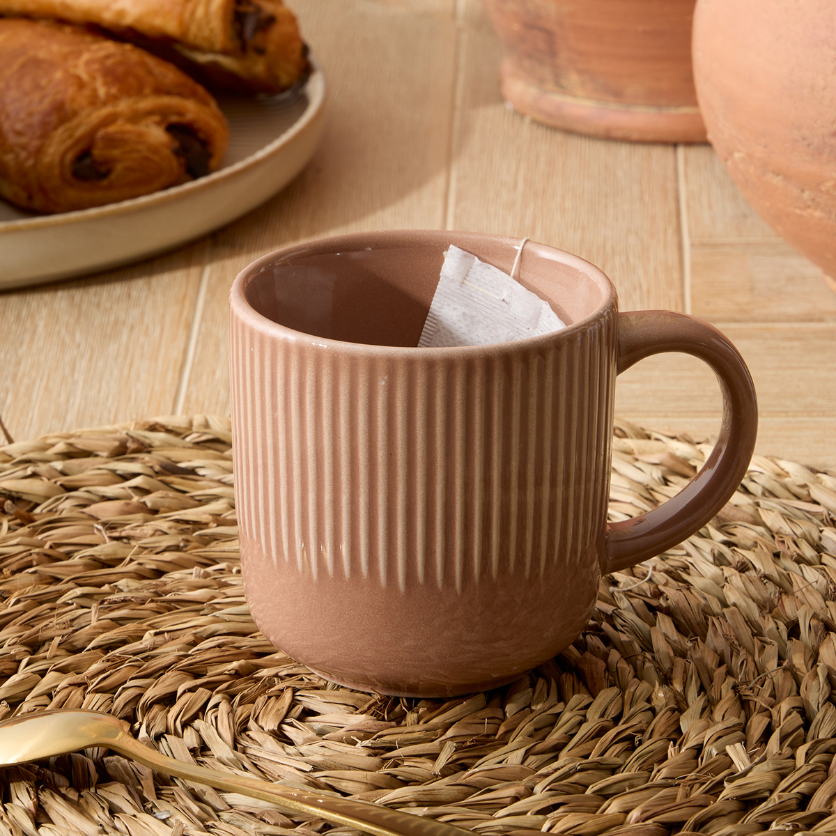 Κούπα με μοντέρνα αισθητική. Είναι κατασκευασμένη από κεραμικό υλικό σε μπεζ χρώμα. Οι κεραμικές κούπες διατηρούν τη θερμοκρασία των ροφημάτων για μεγαλύτερο χρονικό διάστημα, ζεστά ή κρύα, λόγω της καλής θερμομονωτικής τους ικανότητας. Αντέχουν τις υψηλές θερμοκρασίες και είναι ανθεκτικές στις θερμικές αλλαγές. Ιδανική κούπα για να απολαύσετε οποιοδήποτε ζεστό ρόφημα ή καφέ. Συνδυάστε τη με τα υπόλοιπα είδη του ίδιου σχεδίου για ένα ολοκληρωμένο αποτέλεσμα. Χωρητικότητα 360ml.