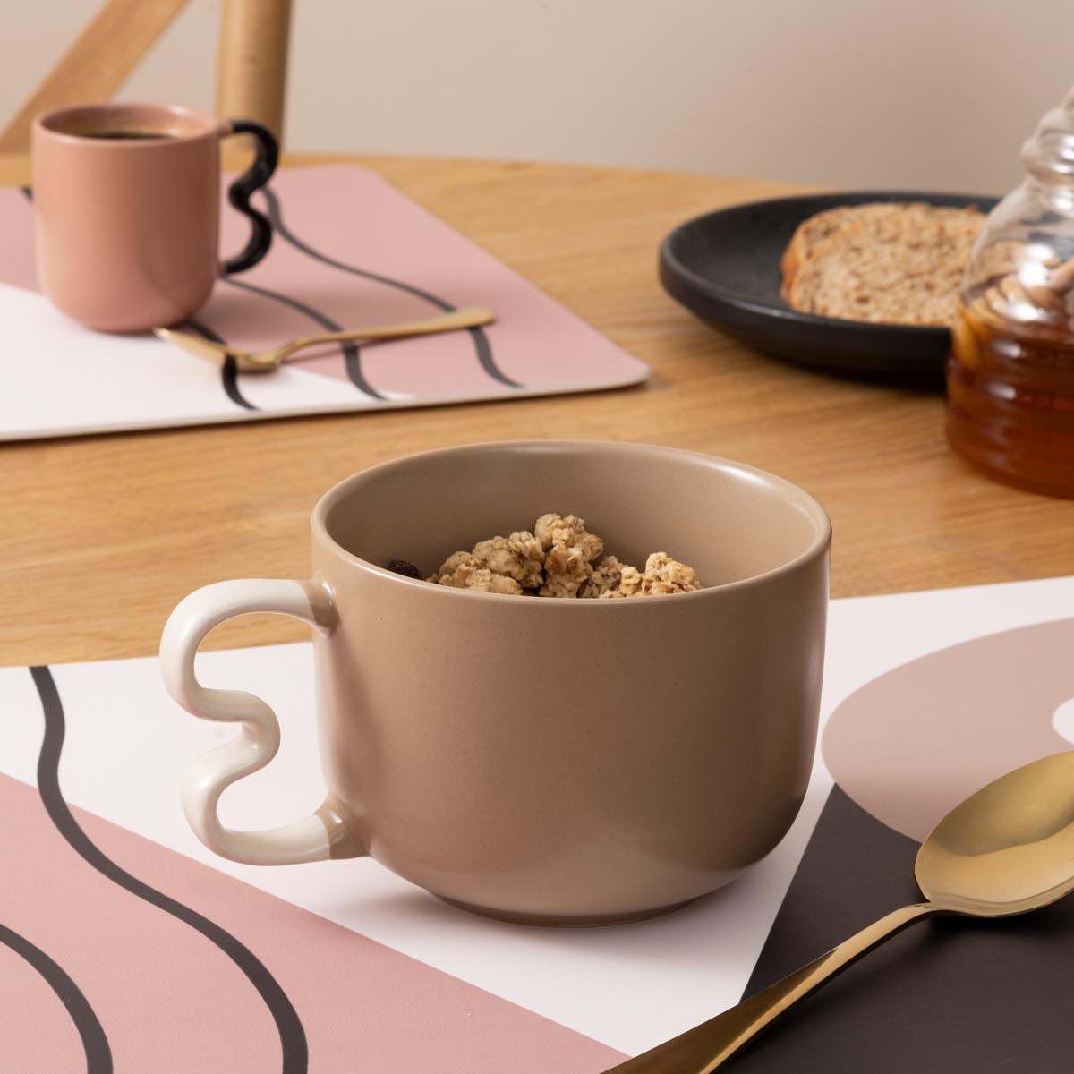 Κούπα με μοντέρνο σχεδιασμό. Είναι κατασκευασμένη από κεραμικό υλικό σε μπεζ χρώμα με εκρού λαβή. Χωρητικότητας 580ml. Ιδανική για να απολαύσετε οποιοδήποτε ζεστό ρόφημα ή καφέ. Συνδυάστε τη με τα υπόλοιπα είδη του ίδιου σχεδίου για ένα ολοκληρωμένο αποτέλεσμα.