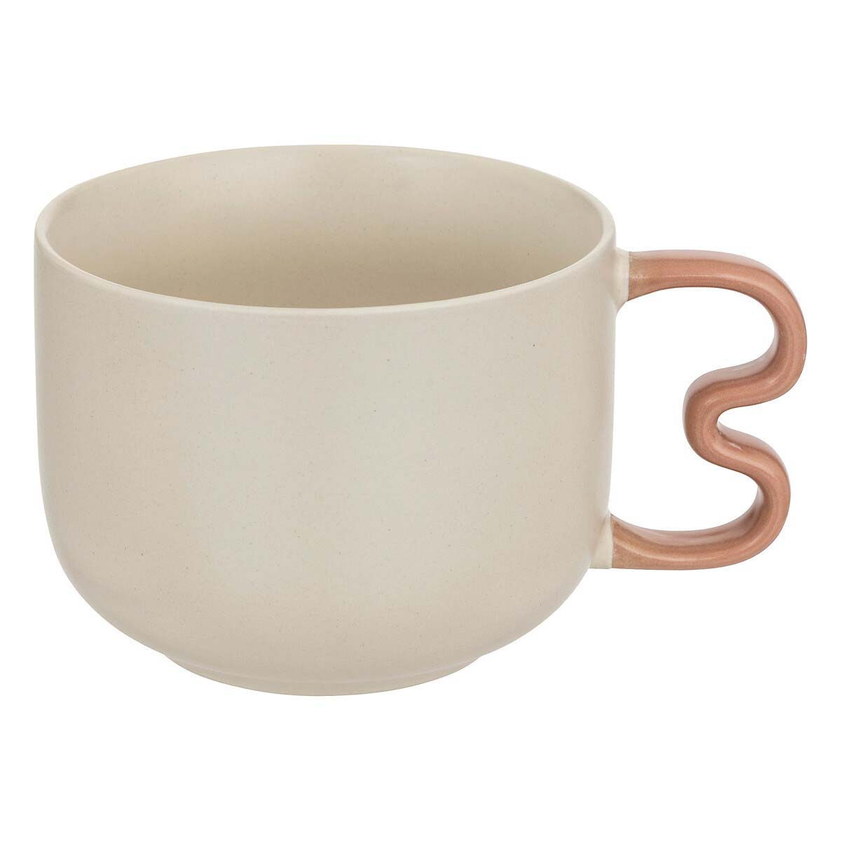 Κούπα με μοντέρνο σχεδιασμό. Είναι κατασκευασμένη από κεραμικό υλικό σε εκρού χρώμα με καφέ λαβή. Χωρητικότητας 580ml. Ιδανική για να απολαύσετε οποιοδήποτε ζεστό ρόφημα ή καφέ. Συνδυάστε τη με τα υπόλοιπα είδη του ίδιου σχεδίου για ένα ολοκληρωμένο αποτέλεσμα.