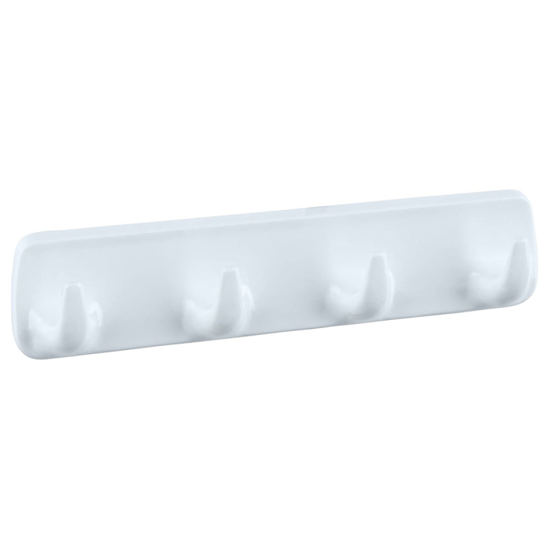 Κρεμάστρα τοίχου της γερμανικής εταιρείας Wenko. Είναι κατασκευασμένη από ανθεκτικό πλαστικό υλικό, υψηλής ποιότητας σε λευκό χρώμα. Διαθέτει 4 γάντζους για να κρεμάτε ρούχα, πανωφόρια, πετσέτες, κλπ. Είναι ιδανική για χρήση στο χολ, το υπνοδωμάτιο, το μπάνιο, την κουζίνα και γενικά σε όλο το σπίτι. Τοποθετείται με αυτοκόλλητο, χωρίς τρυπήματα ή βίδες. Απλώς τραβάτε την προστατευτική μεμβράνη και πιέζετε σταθερά το κρεμαστράκι στη θέση του. Είναι ιδανικό για όλες τις λείες, αδιαπέραστες από τον αέρα επιφάνειες, όπως πλακάκια, γυαλί, πάνελ ξύλου, κλπ.