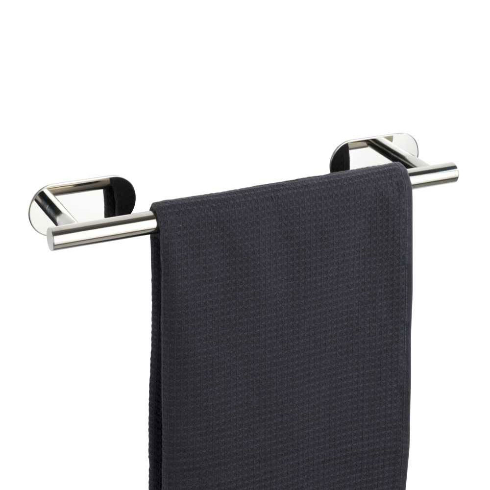 Ράγα για πετσέτα της γερμανικής εταιρείας Wenko. Είναι κατασκευασμένη από ανοξείδωτο υλικό που προσφέρει μεγάλη αντοχή στην σκουριά σε ασημί απόχρωση. Διαθέτει ειδικό αυτοκόλλητο για γρήγορη και εύκολη εγκατάσταση χωρίς βίδωμα ή τρύπημα. Απλώς αφαιρέστε το προστατευτικό φιλμ από το αυτοκόλλητο, τοποθετήστε την ράγα στην επιθυμητή θέση και πιέστε την. Εξαιρετικά σταθερό κράτημα σε όλες τις λείες επιφάνειες. Μπορεί να αφαιρεθεί χωρίς να αφήσει υπολείμματα. Αντοχή βάρους έως 40kg.