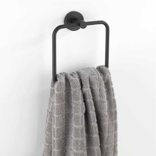 Κρίκος για πετσέτα της γερμανικής εταιρείας Wenko. Είναι κατασκευασμένο από ανοξείδωτο υλικό σε μαύρο χρώμα με ματ φινίρισμα. Τα υλικά τοποθέτησης (βίδες και ούπατ) περιλαμβάνονται στην συσκευασία. Αν επιθυμείτε να το τοποθετήσετε χωρίς να τρυπήσετε τον τοίχο ή τα πλακάκια, μπορείτε να χρησιμοποιήσετε την κόλλα Power Loc.