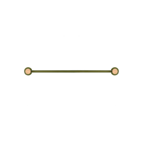 Ράγα για πετσέτα από την εταιρεία εstia. Είναι κατασκευασμένη από μεταλλικό υλικό σε πράσινη απόχρωση με επίστρωση πούδρας για υψηλή αντοχή με λεπτομέρειες από bamboo. Εφαρμόζει στον τοίχο με βίδες. Ο πιο έξυπνος και εξυπηρετικός τρόπος για να εξοικονομήσετε χώρο.
