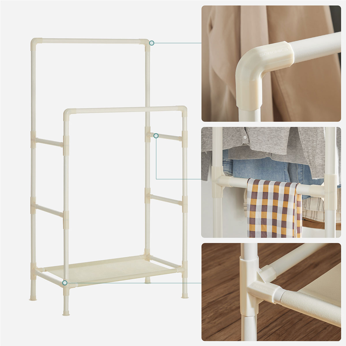 Κρεμάστρα Δαπέδου Διπλή (88x44x154) Songmics RDR01WT