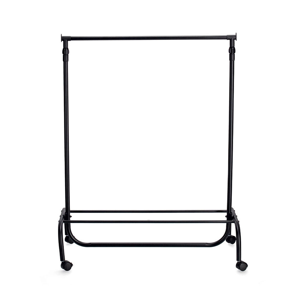 Ράγα ρούχων δαπέδου για τα ρούχα σας σε μαύρο χρώμα. Έχει ρυθμιζόμενο ύψος για να κρεμάτε μακριά ρούχα όπως φορέματα και παλτό. Είναι τροχήλατη, καθώς έχει ροδάκια για να μετακινείται εύκολα. Ιδανική για να δημιουργήσετε επιπλέον αποθηκευτικό χώρο για τα ρούχα σας.