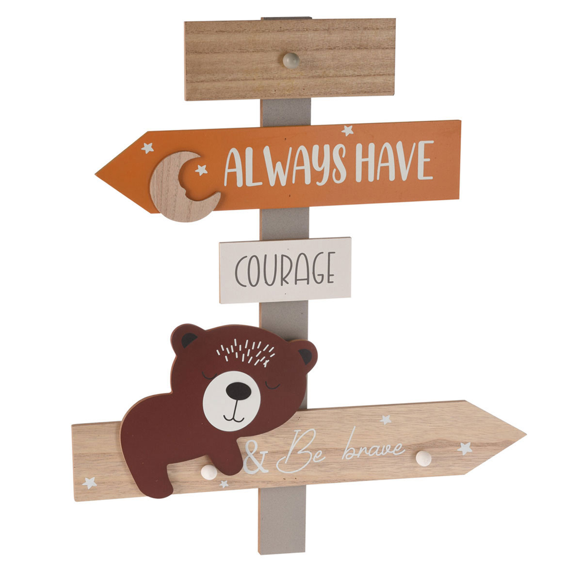 Κρεμάστρα τοίχου με 3 άγκιστρα για να είναι πάντα τακτοποιημένο το δωμάτιο του παιδιού σας. Είναι κατασκευασμένο από ξύλο MDF με καφέ χρώμα, σχέδιο αρκουδάκι και λευκές-μαύρες λεπτομέρειες. Οργανώνει και διακοσμεί το παιδικό δωμάτιο.Τοποθετείτε στον τοίχο με βίδα ή καρφί (τα υλικά τοποθέτησης δεν περιλαμβάνονται).