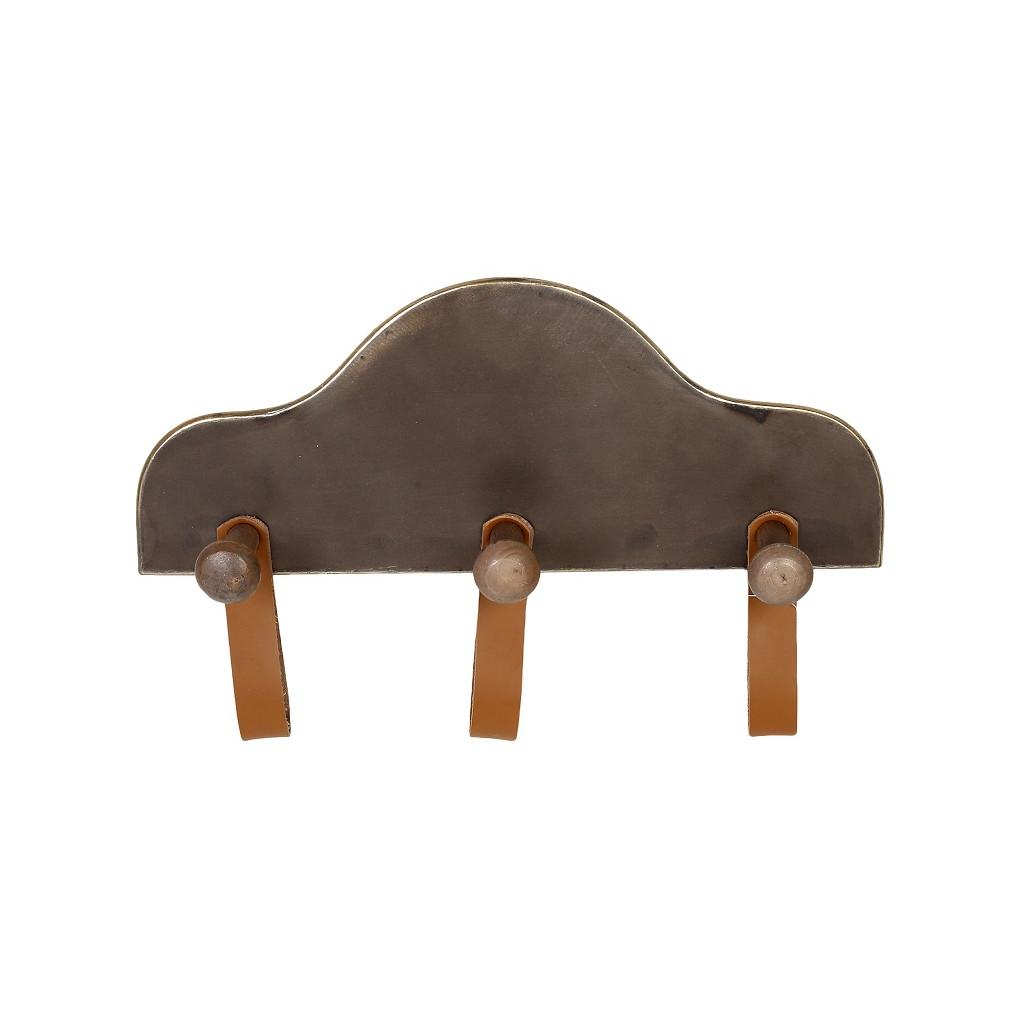 Κρεμάστρα τοίχου σε καφέ χρώμα και μίνιμαλ σχέδιο από την εταιρεία Espiel. Ο κορμός της είναι κατασκευασμένος από σίδηρο, τα κουμπιά κρεμάσματος από ξύλο πεύκου και τα λουριά από δερματίνη. Διαθέτει 3 σημεία κρεμάσματος. Μπορείτε να την τοποθετήσετε σε ένα κενό τοίχο δίπλα από την πόρτα σας για να κρεμάτε τα παλτό και τα κασκόλ σας.