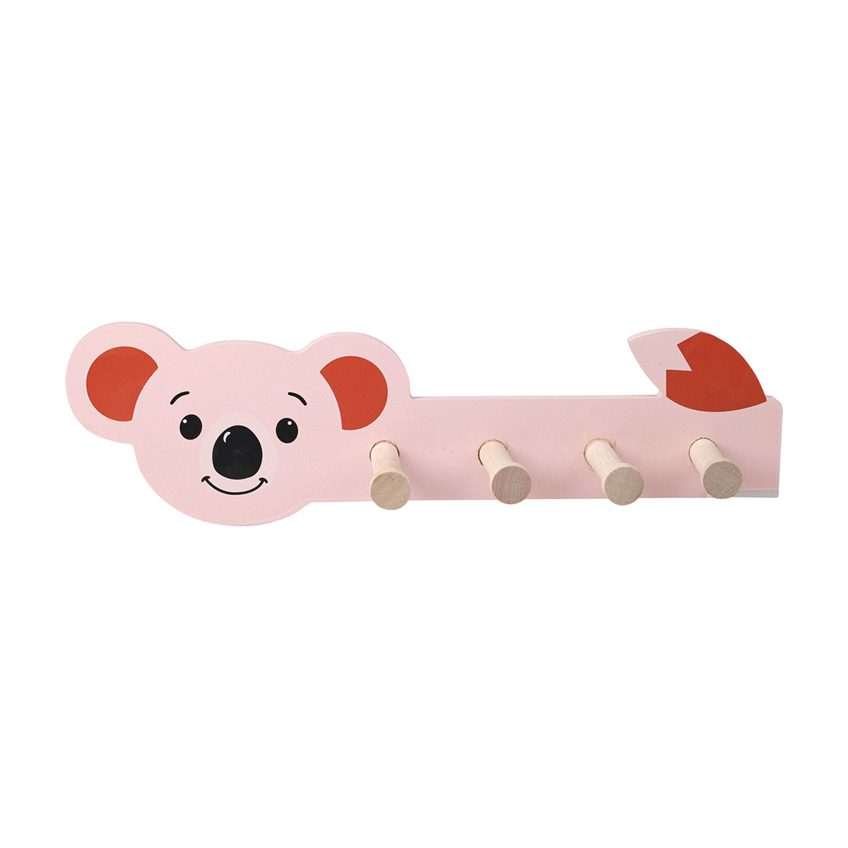 Κρεμάστρα τοίχου για το βρεφικό ή παιδικό δωμάτιο με σχέδιο κοάλα σε ροζ αποχρώσεις. Είναι κατασκευασμένη από ξύλο MDF και έχει 4 θέσεις κρεμάσματος. Ιδανική για να κρεμάσετε τα πράγματα του παιδιού σας και να κρατήσετε τακτοποιημένο το δωμάτιό του.