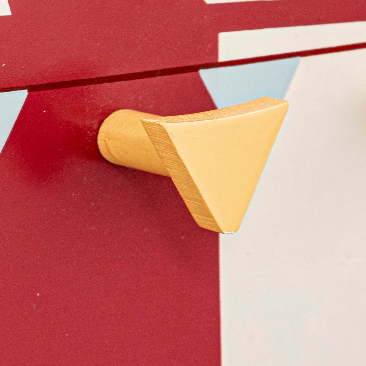 Κρεμάστρα τοίχου για το βρεφικό ή παιδικό δωμάτιο με 4 άγκιστρα. Είναι κατασκευασμένη από ξύλο MDF_E1 σε κόκκινο και λευκό χρώμα με σχέδιο τσίρκο. Ιδανική για να κρεμάσετε τα πράγματα του παιδιού σας και να κρατήσετε τακτοποιημένο το δωμάτιό του. *Οι βίδες στερέωσης δεν περιλαμβάνονται.*