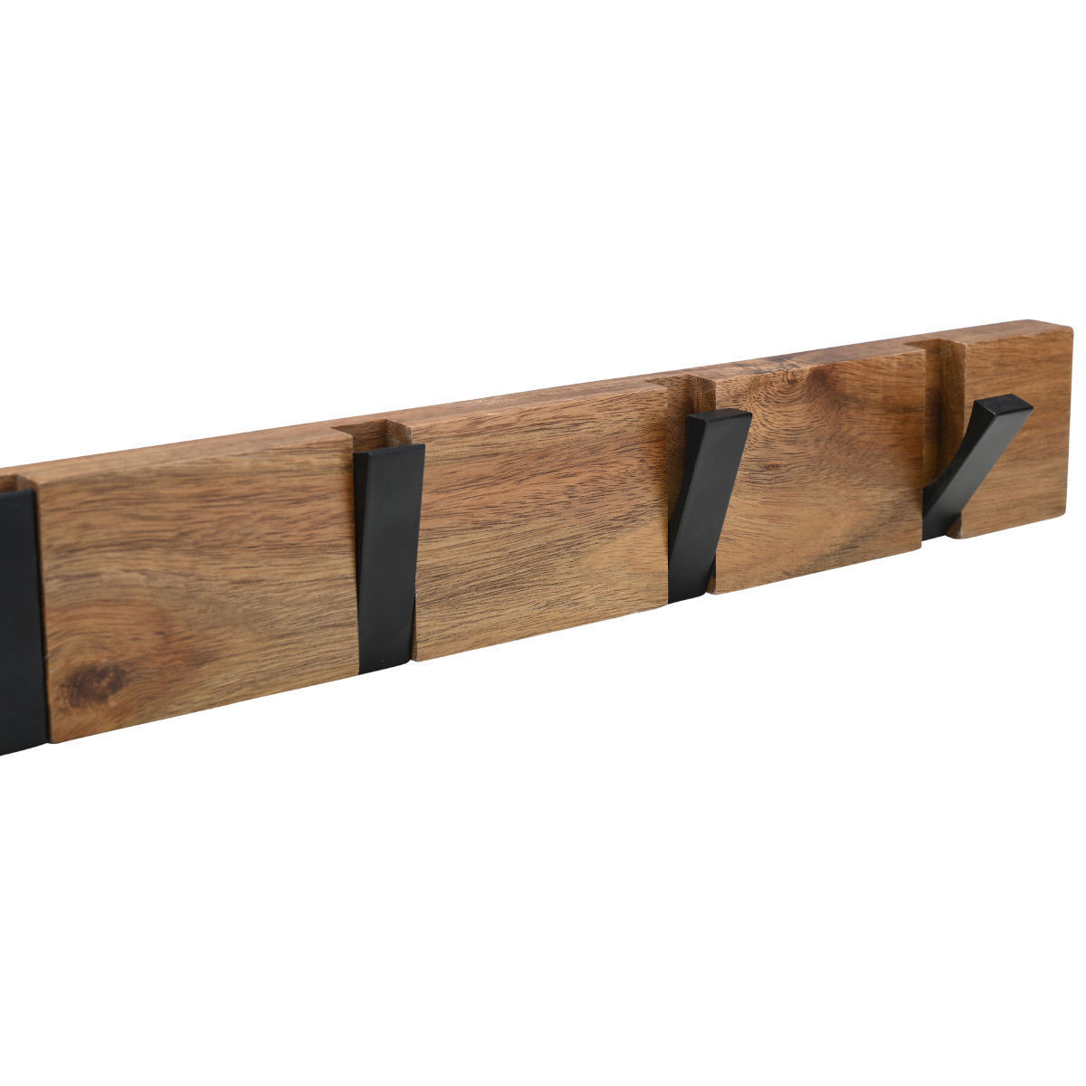 Κρεμάστρα 4 θέσεων από την εταιρεία εstia.Ο σκελετός είναι κατασκευασμένος από ξύλο σε καφέ απόχρωση και έχει 4 αναδιπλούμενους γάντζους σε μαύρο χρώμα. Μπορείτε να την τοποθετήσετε σε έναν κενό τοίχο για να κρεμάτε τα πανωφόρια ή για να διακοσμήσετε τον χώρο σας.