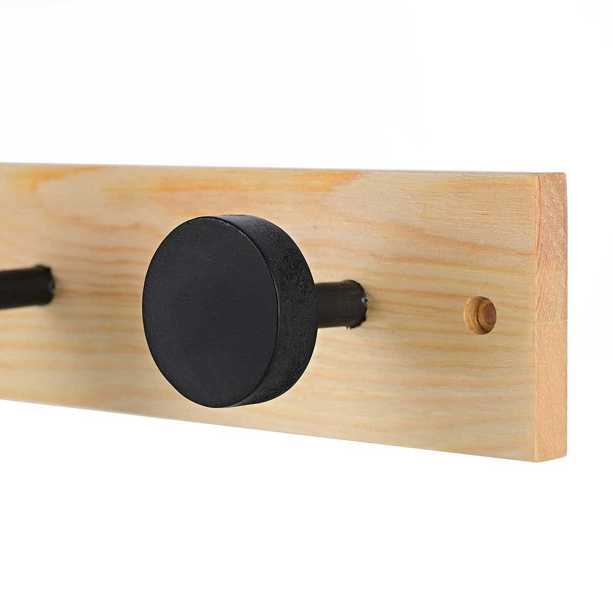 Κρεμάστρα τοίχου από την εταιρεία εstia. Είναι κατασκευασμένη από ξύλο πεύκου σε φυσική απόχρωση με μαύρα γαντζάκια. Τοποθετείται στον τοίχο με βίδες. Μπορείτε να την τοποθετήσετε σε έναν κενό τοίχο για να κρεμάτε τα πανωφόρια ή για να διακοσμήσετε τον χώρο σας.
