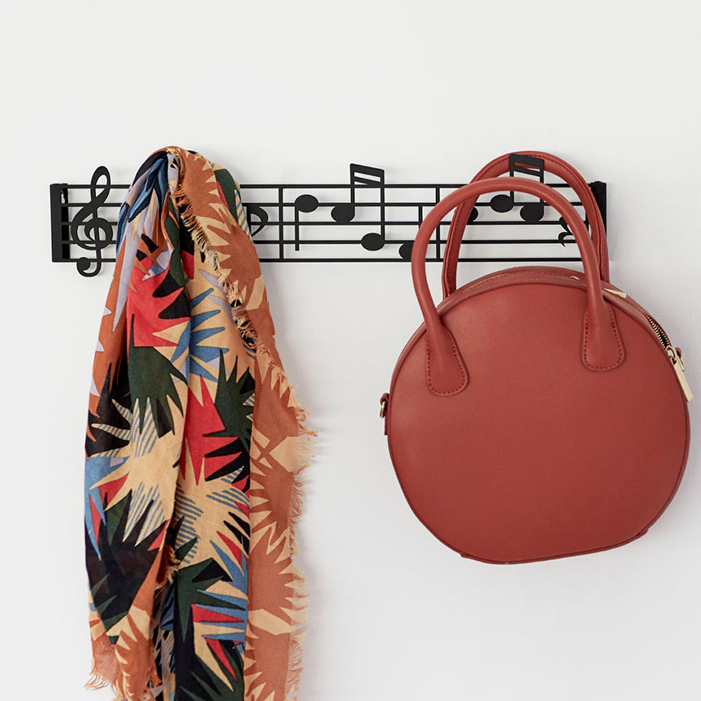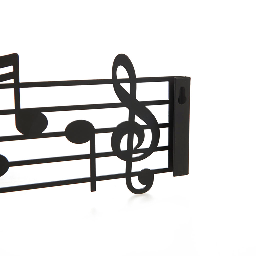 Κρεμάστρα τοίχου με 4 θέσεις σε μαύρο χρώμα και σχήμα πεντάγραμμο με νότες από την εταιρεία Octopus. Είναι κατασκευασμένη από μεταλλικό υλικό για μέγιστη ανθεκτικότητα. Κρατήστε οργανωμένα τα ρούχα και τα αξεσουάρ σας και δώστε στον χώρο σας μια μοντέρνα πινελιά! Περιλαμβάνονται οι βίδες για την τοποθέτηση.