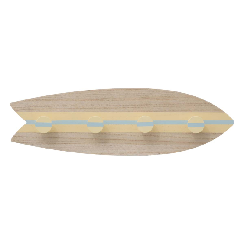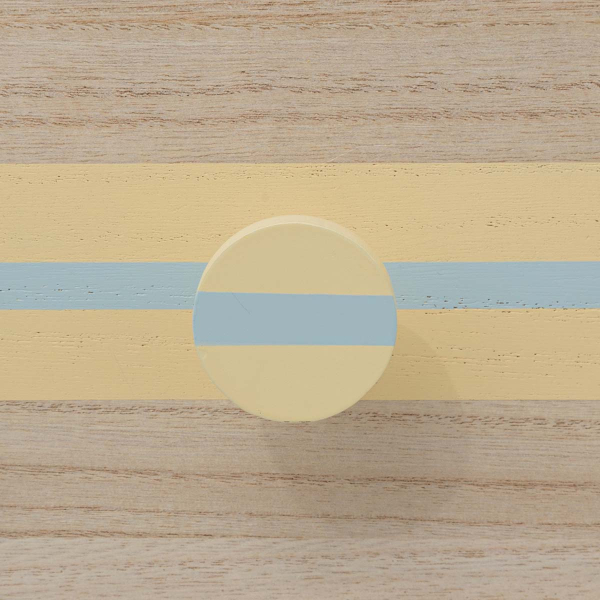 Κρεμάστρα τοίχου κατασκευασμένη από ξύλο mdf σε μπεζ απόχρωση με κίτρινες-γαλάζιες λεπτομέρειες. Διαθέτει 4 κρεμαστράκια για να κρεμάτε τα παλτό και τα κασκόλ σας. Το σχέδιο της είναι κατάλληλο και για παιδικό ή εφηβικό δωμάτιο. Τοποθετείται στον τοίχο με 2 βίδες ή καρφιά (τα υλικά τοποθέτησης δεν περιλαμβάνονται). Μέγιστο βάρος αντοχής 9 κιλά.