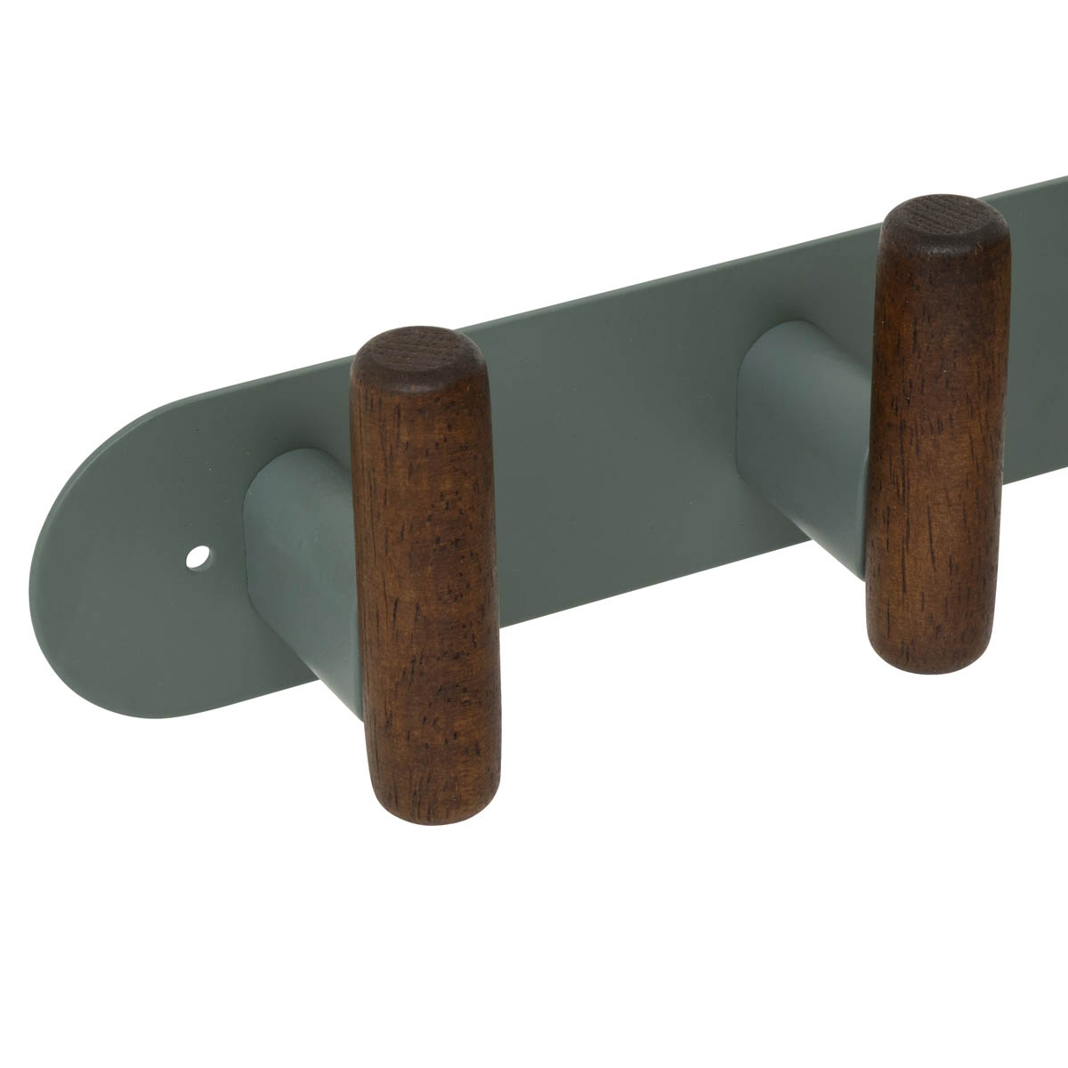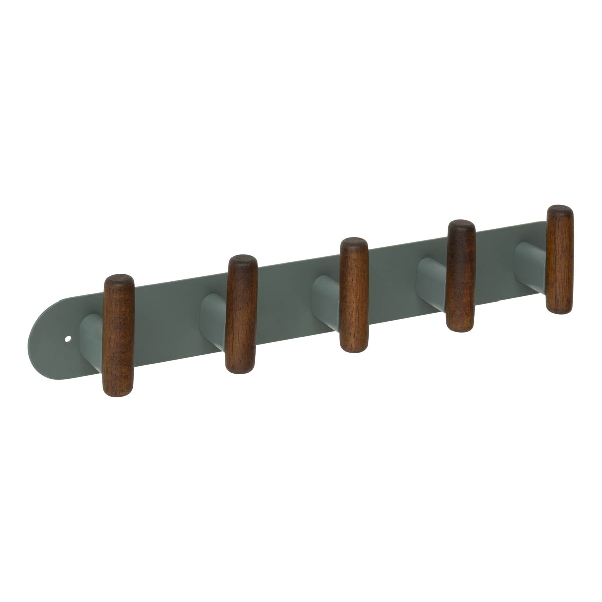 Μεταλλική κρεμάστρα 5 θέσεων σε γκρι χρώμα για τοποθέτηση σε τοίχο. Τα κρεμαστράκια είναι ξύλινα σε σκούρο χρώμα. Ένα πρακτικό αξεσουάρ για την είσοδο, το χωλ ή την κρεβατοκάμαρα. Μέγιστο βάρος αντοχής ανά κρεμαστράκι 1.5kg.