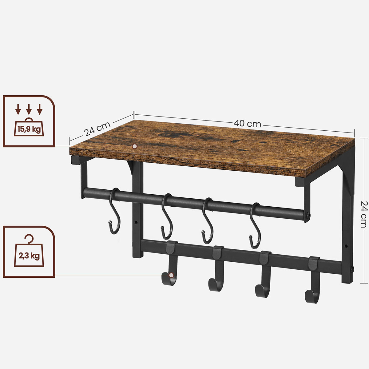 Κρεμάστρα Τοίχου 8 Θέσεων Με Ράφι (40x24x24) Vasagle LCR103B01