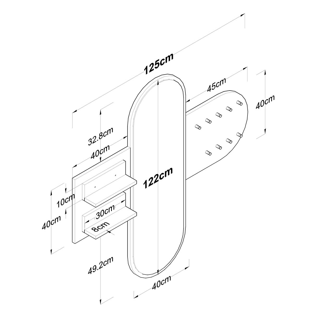 • Τεμάχια: 1 Κρεμάστρα Τοίχου 9 Θέσεων 125εκ.Μx12εκ.Πx120εκ.Υ, Διαστάσεις Καθρέφτη 40εκ.Μx122εκ.Υ