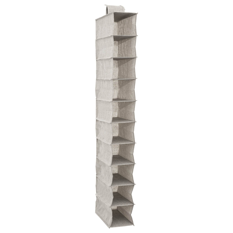 Θήκη για την οργάνωση ντουλάπας σε γκρι χρώμα. Κρεμιέται με ταινία velcro στην ράγα της ντουλάπας. Διαθέτει 10 θέσεις και μπορείτε ιδανικά πέρα από ρούχα, φουλάρια, κασκόλ, τσάντες κλπ να τοποθετήσετε 10 ζευγάρια παπούτσια.