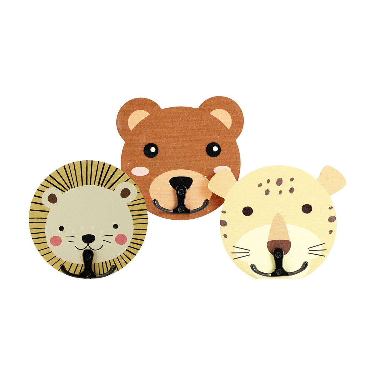 Κρεμαστράκια τοίχου για το βρεφικό ή παιδικό δωμάτιο. Είναι κατασκευασμένα από ξύλο mdf σε μουσταρδί-μπεζ αποχρώσεις και σχέδιο ζωάκια. Ιδανικά για να κρεμάσετε τα πράγματα του παιδιού σας και να κρατήσετε τακτοποιημένο το δωμάτιό του. Τοποθετείται στον τοίχο με βίδα ή καρφί (τα υλικά τοποθέτησης δεν περιλαμβάνονται).