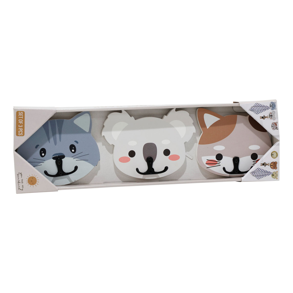 Κρεμαστράκια τοίχου για το βρεφικό ή παιδικό δωμάτιο. Είναι κατασκευασμένα από ξύλο mdf σε γκρι-μπεζ-γαλάζιες αποχρώσεις και σχέδιο ζωάκια. Ιδανικά για να κρεμάσετε τα πράγματα του παιδιού σας και να κρατήσετε τακτοποιημένο το δωμάτιό του. Τοποθετείται στον τοίχο με βίδα ή καρφί (τα υλικά τοποθέτησης δεν περιλαμβάνονται).