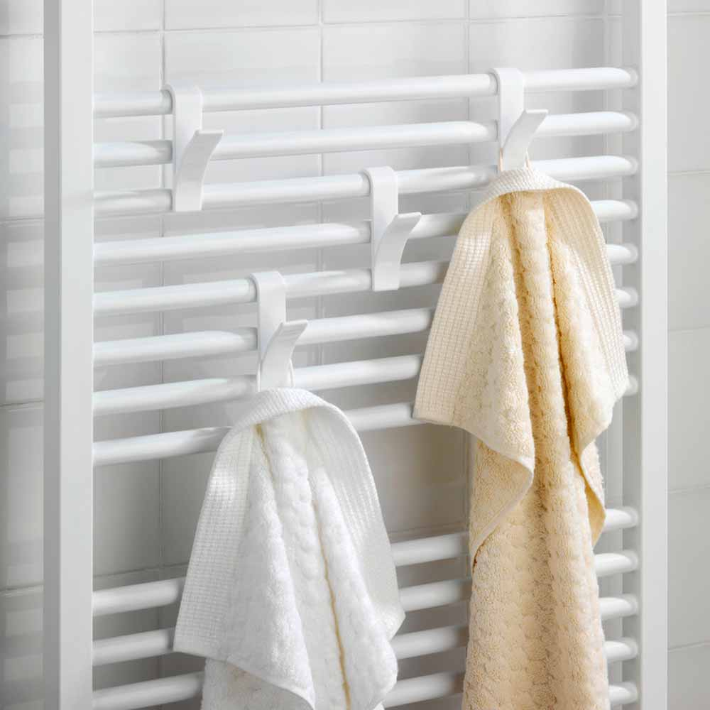 Γαντζάκια για καλοριφέρ μπάνιου από την γερμανική εταιρεία Wenko. Είναι κατασκευασμένα από λευκό πλαστικό. Είναι πολύ πρακτικά και συμβάλλουν στην εξοικονόμηση χώρου.