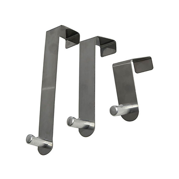 Σετ κρεμαστράκια πόρτας διαφορετικού ύψους, κατασκευασμένα από ανοξείδωτο ατσάλι σε ασημί χρώμα. Είναι πολύ πρακτικά καθώς δεν χρειάζεται να τρυπήσετε την πόρτα και μπορείτε να τους αλλάζετε θέσεις ανάλογα με το που σας είναι απαραίτητα.