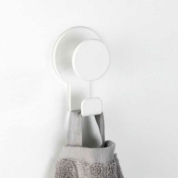 Κρεμαστράκι σε λευκό χρώμα με ματ φινίρισμα της γερμανικής εταιρείας Wenko για το μπάνιο, την κουζίνα ή όπου σας είναι απαραίτητο. Είναι κατασκευασμένο από ανοξείδωτο υλικό που προσφέρει εξαιρετική ανθεκτικότητα στην σκουριά. Τοποθετείται με αυτοκόλλητο, χωρίς τρυπήματα ή βίδες. Απλώς τραβάτε την προστατευτική μεμβράνη και πιέζετε σταθερά το κρεμαστράκι στη θέση του. Είναι ιδανικό για όλες τις λείες, αδιαπέραστες από τον αέρα επιφάνειες, όπως πλακάκια, γυαλί, πάνελ ξύλου, κλπ.